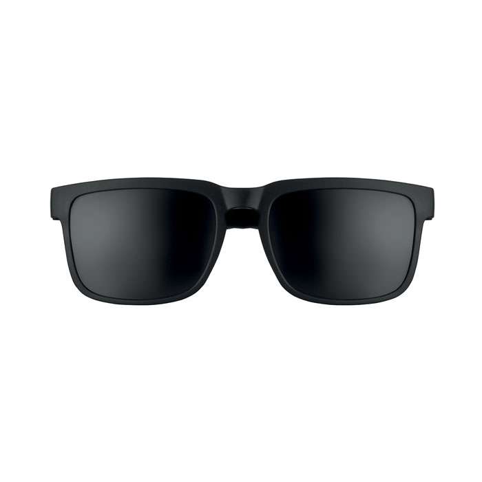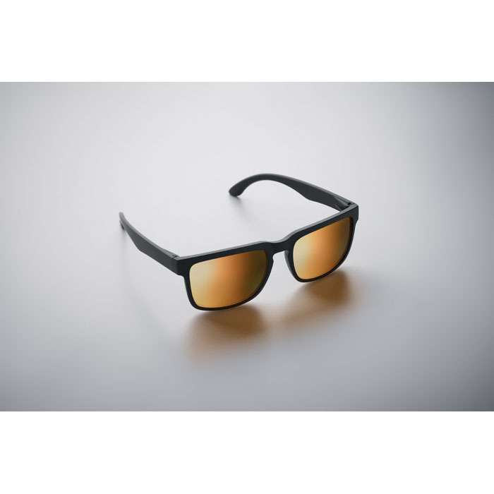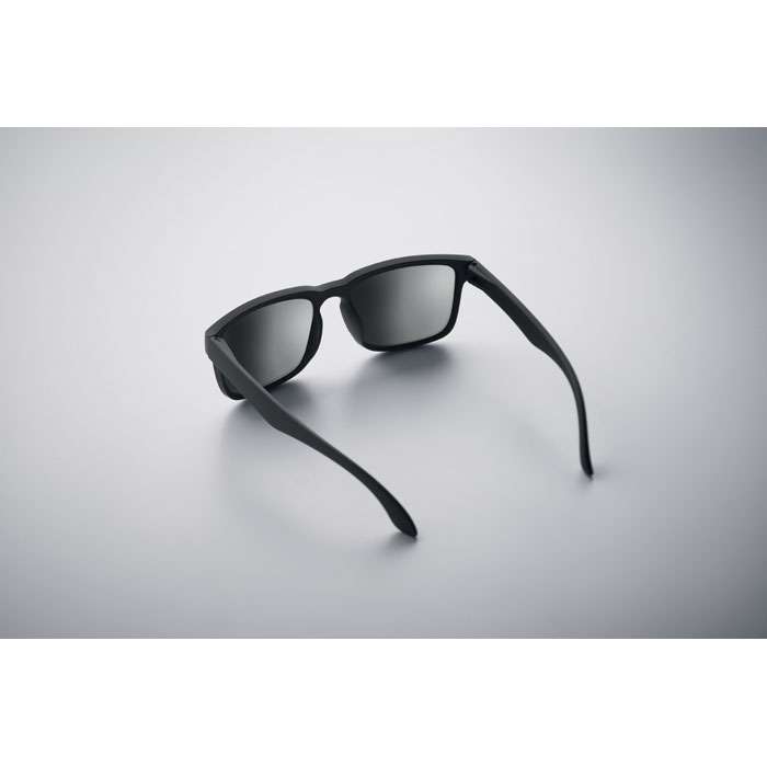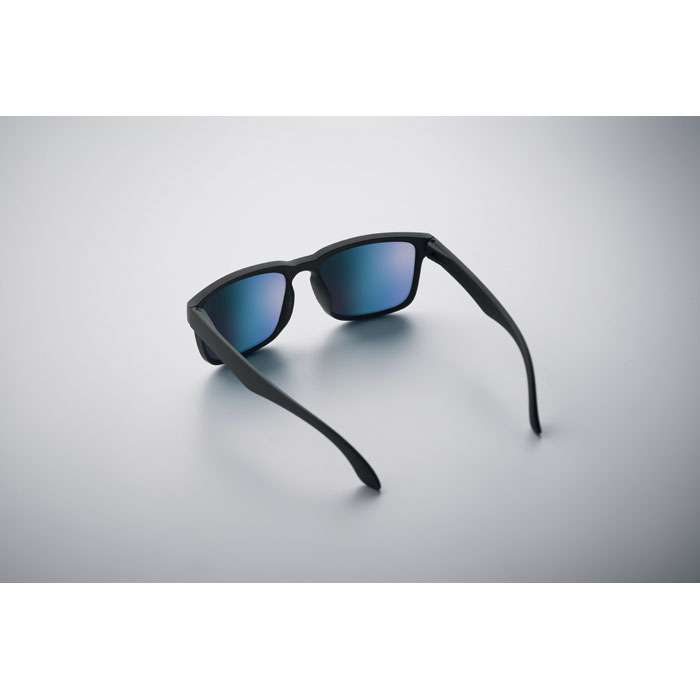 Festivalsolglasögon med spegelblanka glas och matt gummerad båge. UV400-skydd.