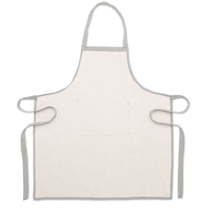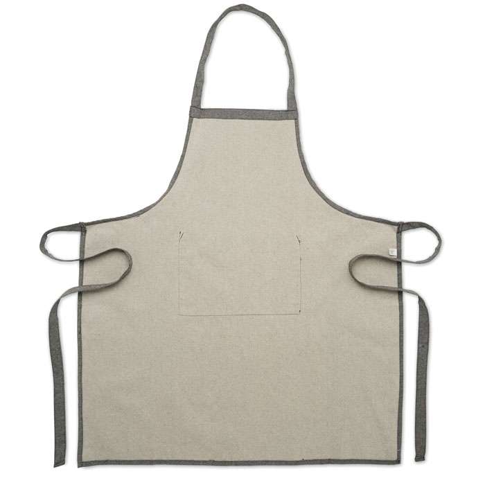 Justerbart köksförkläde med 1 framficka i 220 gr/m² återvunnen bomull. (80 % återvunnen bomull, 20 % vanlig bomull)