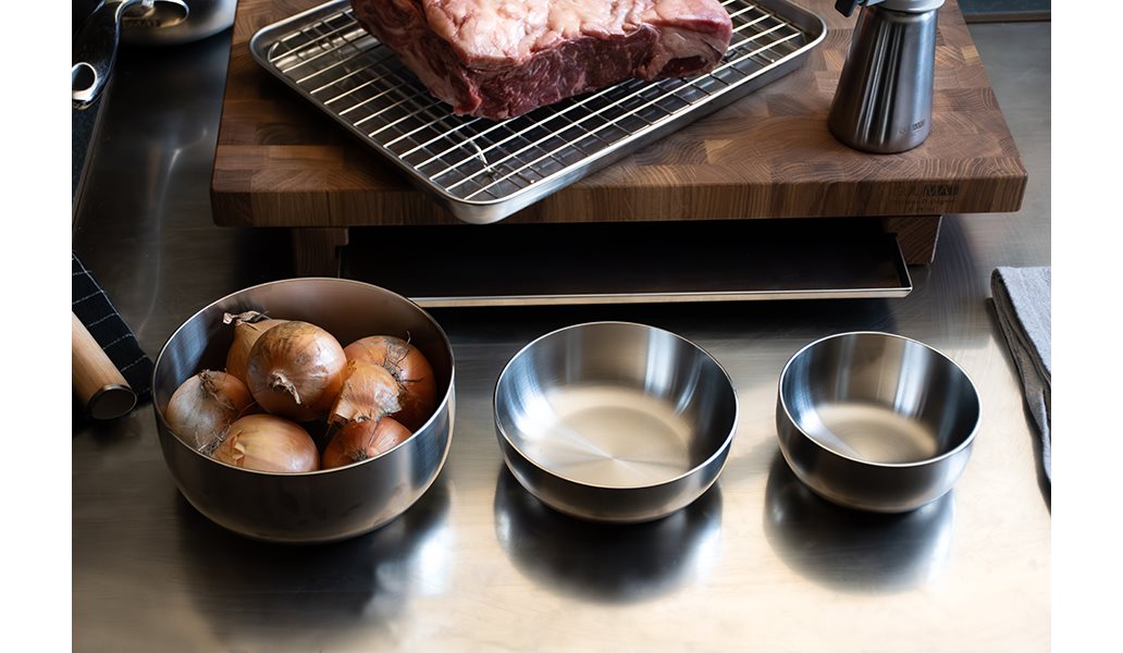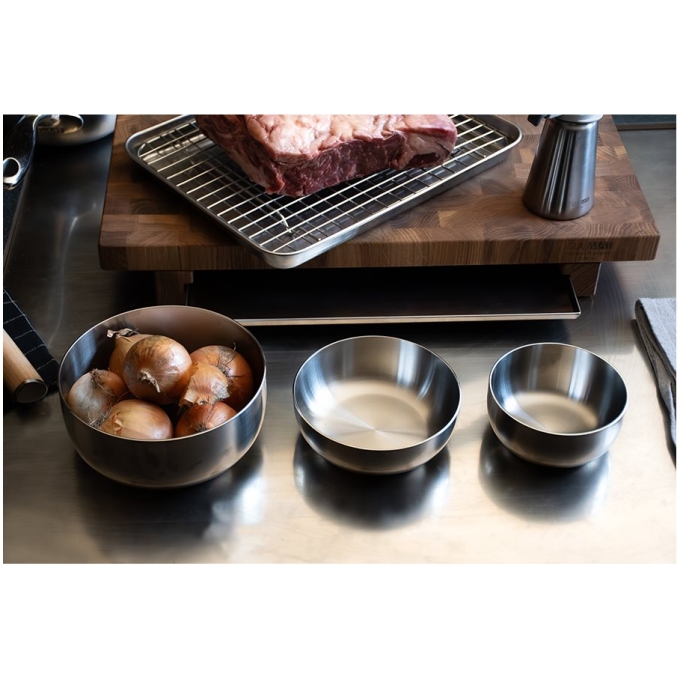 Rostfria skålar ur Culimat Mathias Dahlgren Edition, framtagen för både professionellt kök och hemmabruk. Den robusta kvaliteten och eleganta designen gör den perfekt för allt från mise en place och såser till snacks och tillbehör.