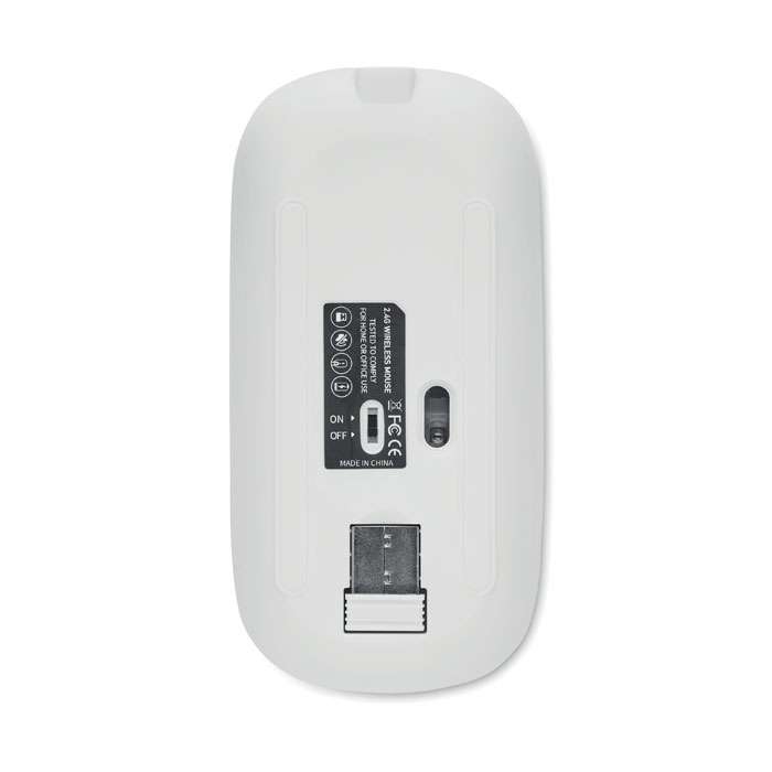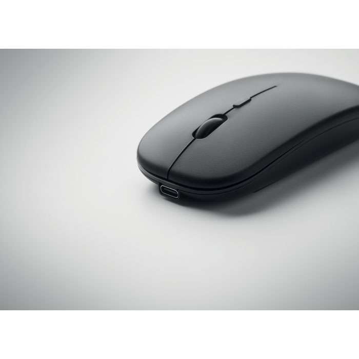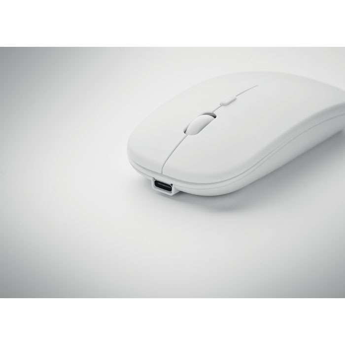 Optisk trådlös mus i återvunnen ABS med uppladdningsbart 500 mAh batteri.