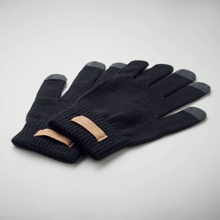 Touchhandskar för smartphone i RPET-polyester med korketikett för tryckyta.