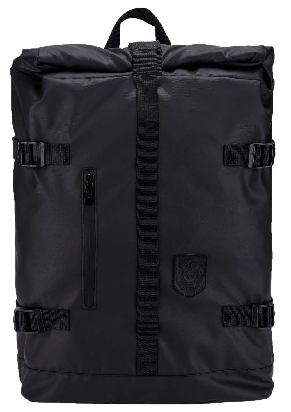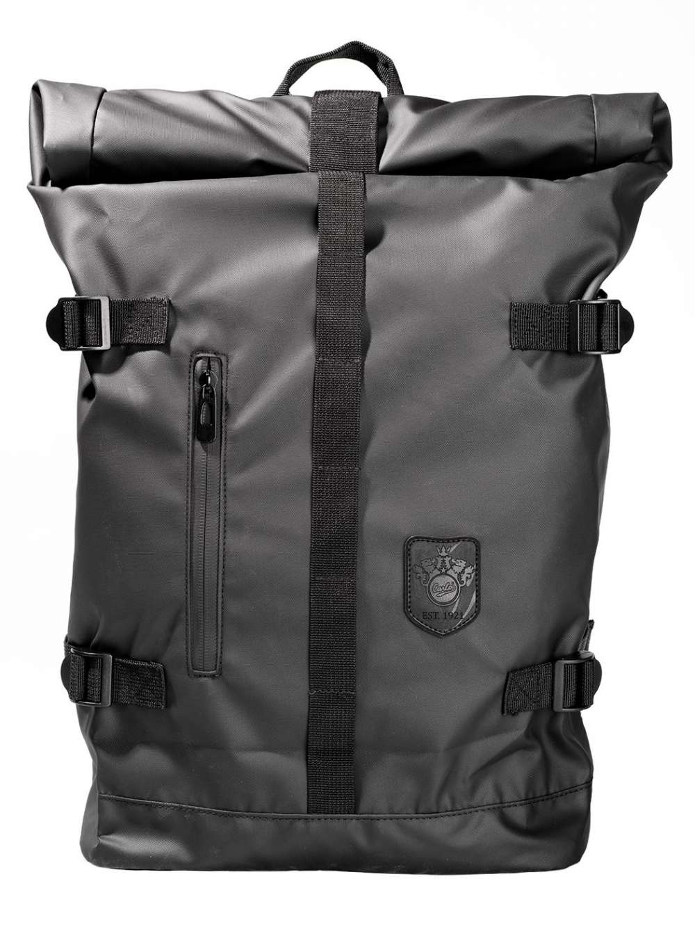 genom att rulla ihop locket. Svetsade blixtlås.