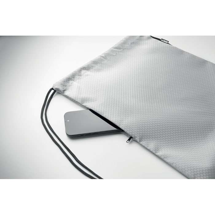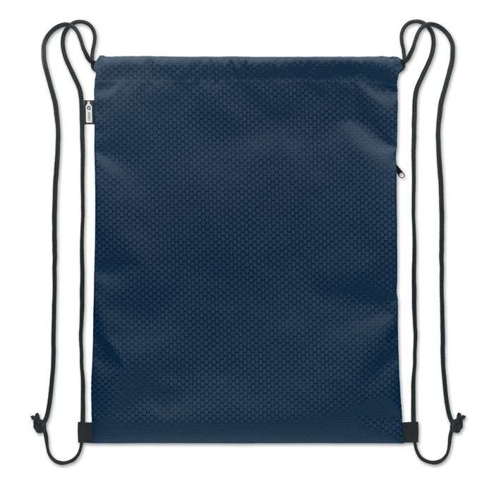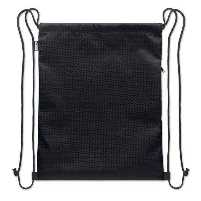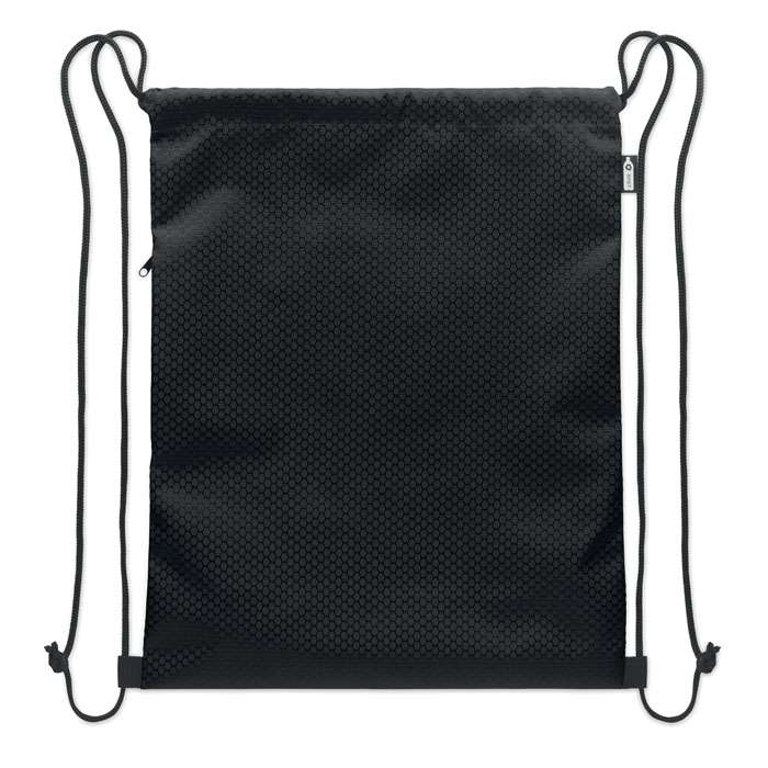 Gymnastikpåse i 420D RPET-polyester med vertikal sidoficka med dragkedja och foder i RPET 210D. Med slitstarka snören på båda sidor. Volym 4,5 l, maxbelastning 5 kg.