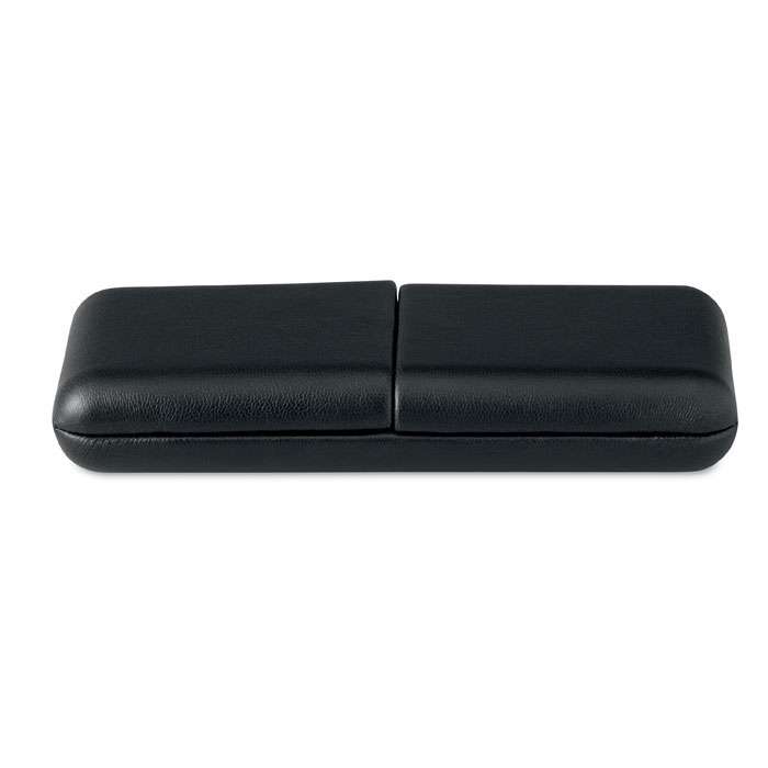 Pennset med reliefmönster i exklusiv presentförpackning. Kulspetspenna med vridmekanism och Rollerballpenna. Blått bläck.