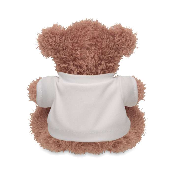 Nallebjörn av polyester klädd som läkare med vit T-shirt med tryck. Broderade ögon, näsa och mun.