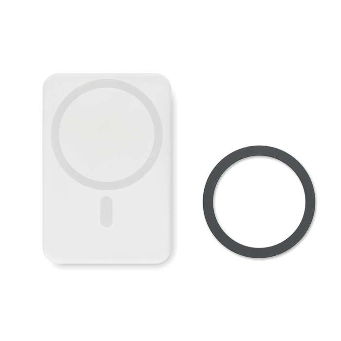 Magnetisk trådlös laddare (15 W) och powerbank (5000 mAh). Utgång: Uteffekt: DC 9V/1,1A (18W) idealisk för snabbladdning. Kompatibel med iPhone®X, 8 , Samsung 7 och nyare. Fungerar med alla enheter som har Qi-laddning. Inkluderar ytterligare magnetisk metallring för att stödja laddning av andra icke-magnetiska trådlöst laddningsbara telefoner. In/utgång: Typ-C