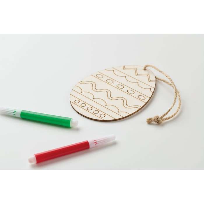 Set för målning av träägg med jutesnöre och 4st färgpennor för färgläggning.