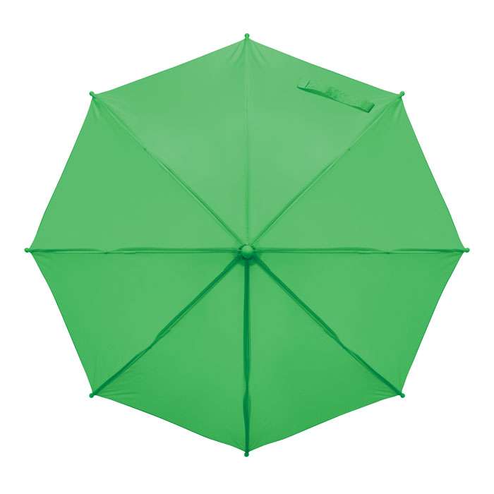 18 tums barnparaply med automatisk öppning. Skaft och ribbor i metall, 190T polyester. Handtag, spetsar och topp i PP.