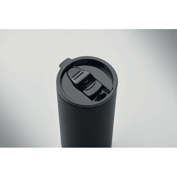 2 i 1-flaska i Tritan och dubbelväggig muggdel i återvunnet rostfritt stål (90 % återvunnet och 10 % rostfritt stål). 2 lock i PP-material. Volym totalt 610 ml, endast dricksglas 350 ml.