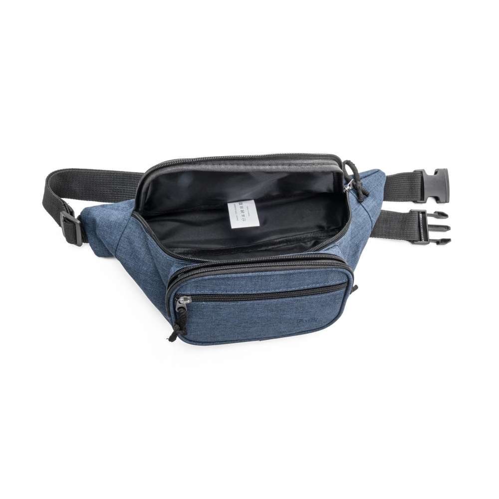 Trendig och lätt unisex midjeväska från Duffy tillverkad av melange 300 D polyester. Justerbar midjerem med spänne. Stort huvudfack, försett med blixtlås. Två ytterfickor försedda med blixtlås, samt ytterligare en mindre ficka på baksidan. Perfekt på semestern, eller till vardags.