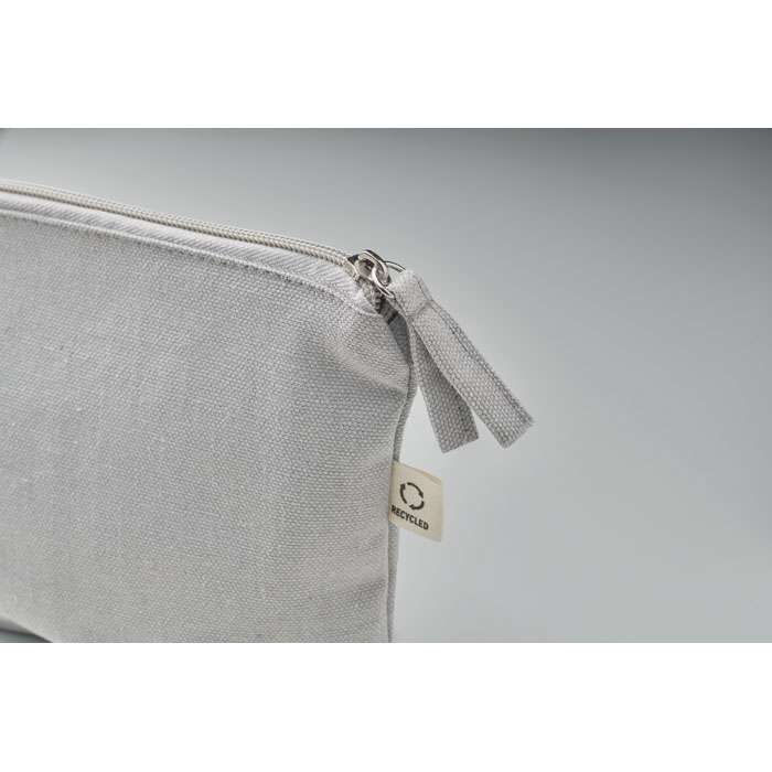 Neccessär- och/eller accessoarväska i återvunnet melerat tyg (70% återvunnen bomull och 30% RPET-polyester) med matchande dragkedja. 320 gr/m². Produkten kan krympa något efter märkning.