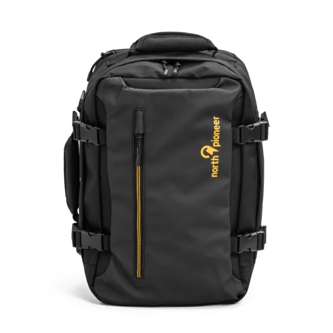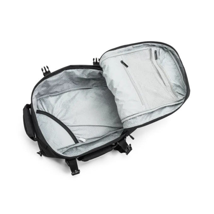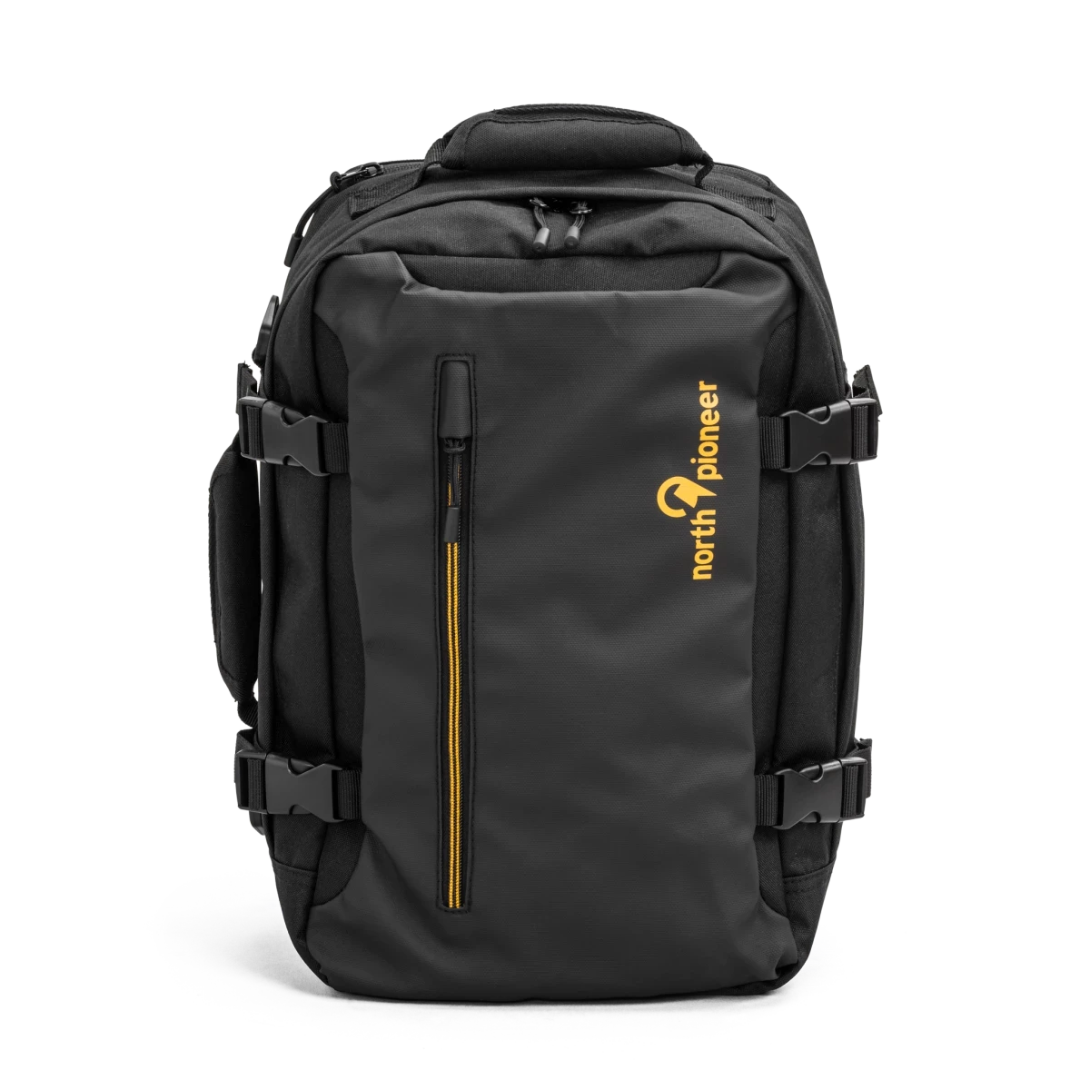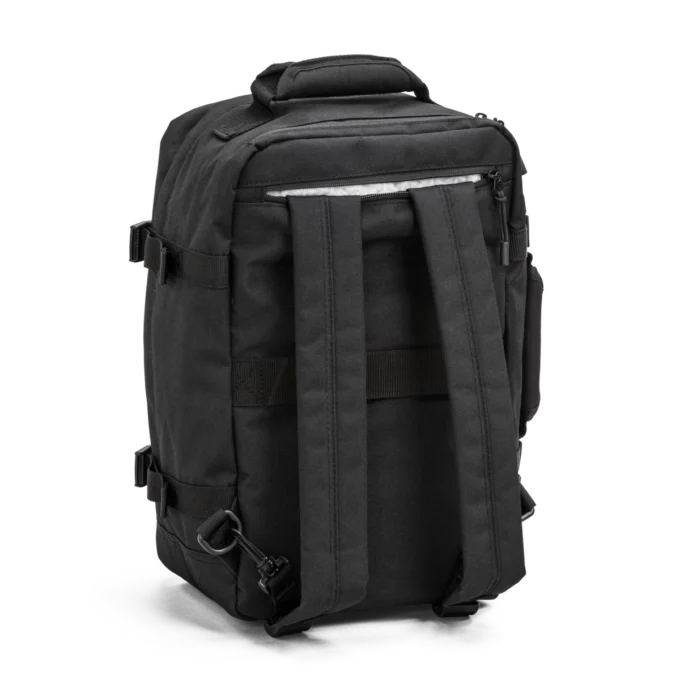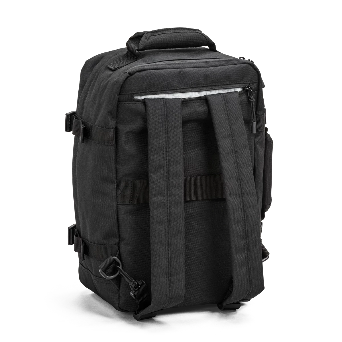 En rymlig och flexibel ryggsäck utvecklad för att uppfylla Ryanairs underseater-krav. – maximalt tillåtet som gratis underseater hos Ryanair.Ryggsäcken har ett multifunktionellt bärsystem med gömda axelremmar, portföljgrepp och justerbar axelrem. Med kompressionsremmar kan djupet minskas till 15 cm – och därmed också fungera som underseater hos andra flygbolag.Tillverkad i slitstarkt, vattenavstötande 900D coated material. Rymligt huvudfack med dragkedja, vadderad laptopficka och flera organiserande fickor.