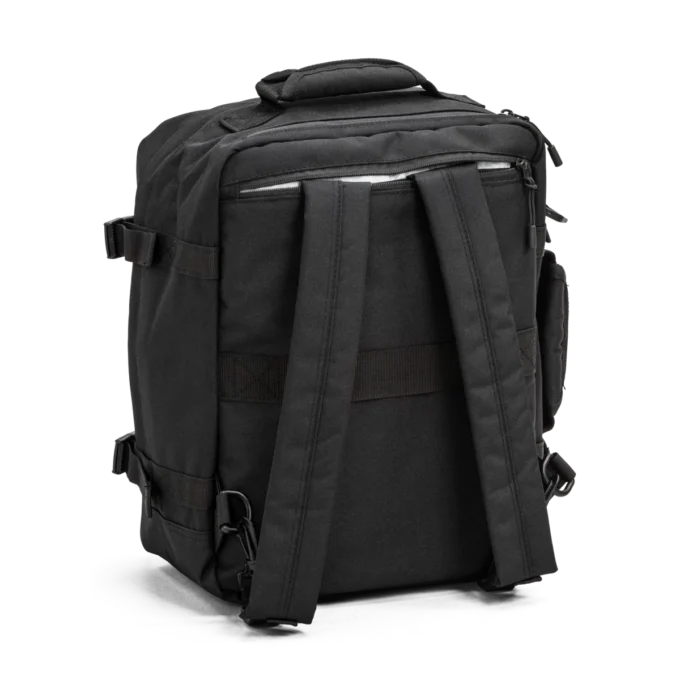 Kompakt och smart reseryggsäck anpassad för underseater-kraven hos både Norwegian och SAS. Ryggsäcken har samma multifunktionella design som Explorer Reserucksack – med gömda axelremmar, portföljgrepp och justerbar axelrem. Godkänd som underseater hos Norwegian. Med kompressionsremmar kan djupet minskas till 15 cm – och passar då också som underseater hos SAS. Huvudfack med dragkedja, vadderad laptopficka och praktiska fickor för organisering. Perfekt för dig som vill resa lätt, men smart.