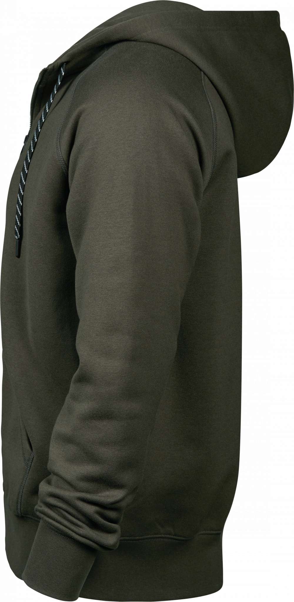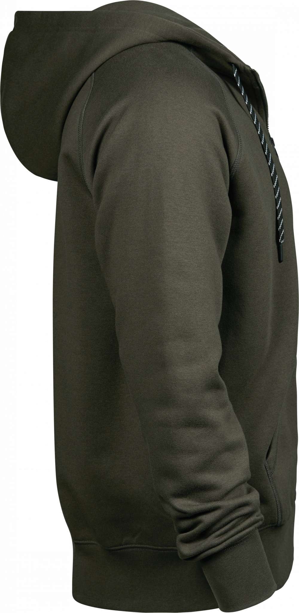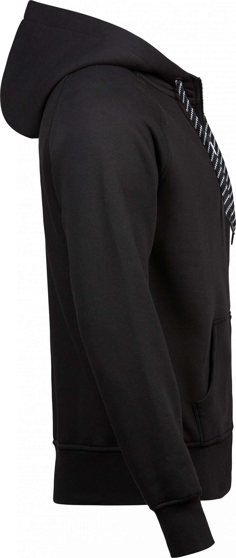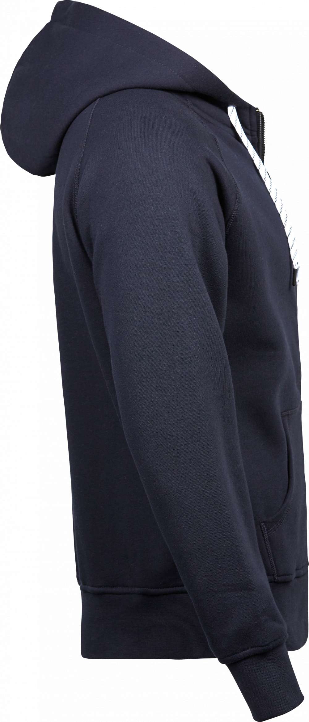 En fullzip-hoodie med figurnära passform. De kontrasterande snörena och nackbandet ger en stilren touch till hoodien; som är utrustad med elastiska muddar och midjeribb. Tillverkad av ett 300–310 gsm tretrådigt bomulls-/polyestertyg är denna ikoniska sweatshirt både slitstark och hållbar; medan dubbelinfärgningen garanterar långvariga färger.