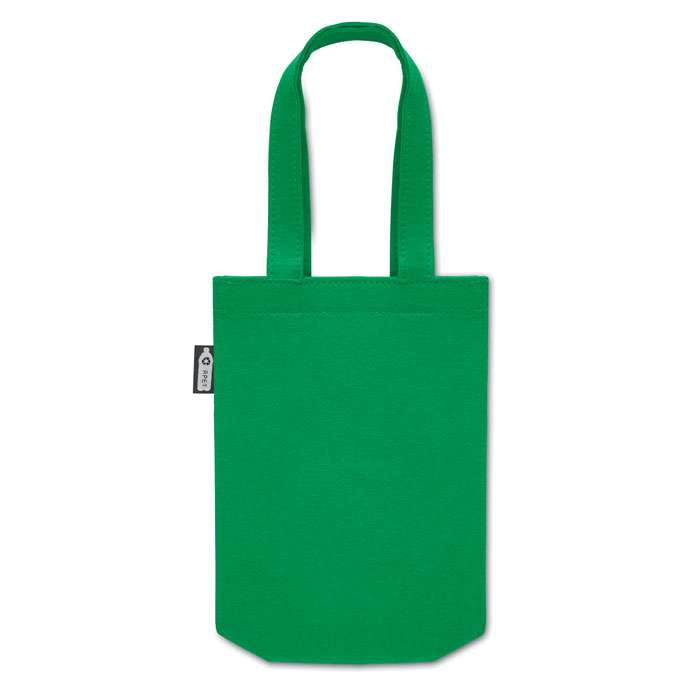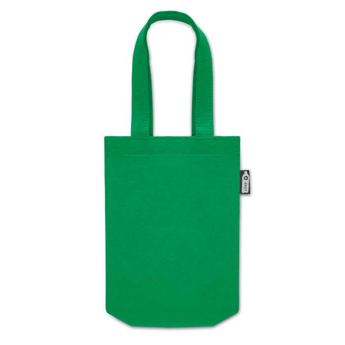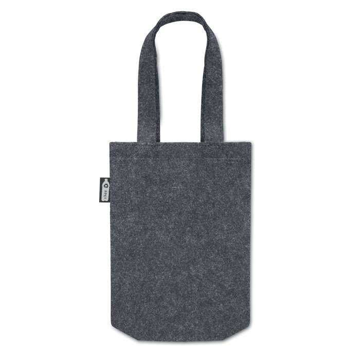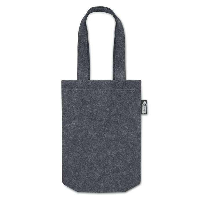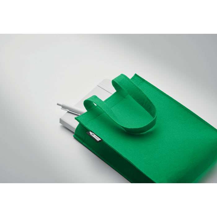 Liten present- eller goodiebag i RPET-filt med korta handtag och kil i botten. Filtens tjocklek: 1 mm.