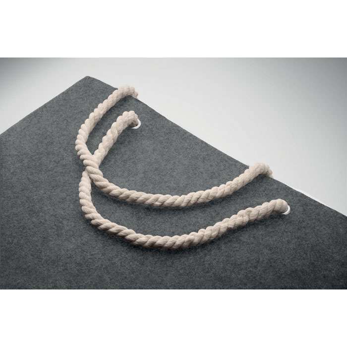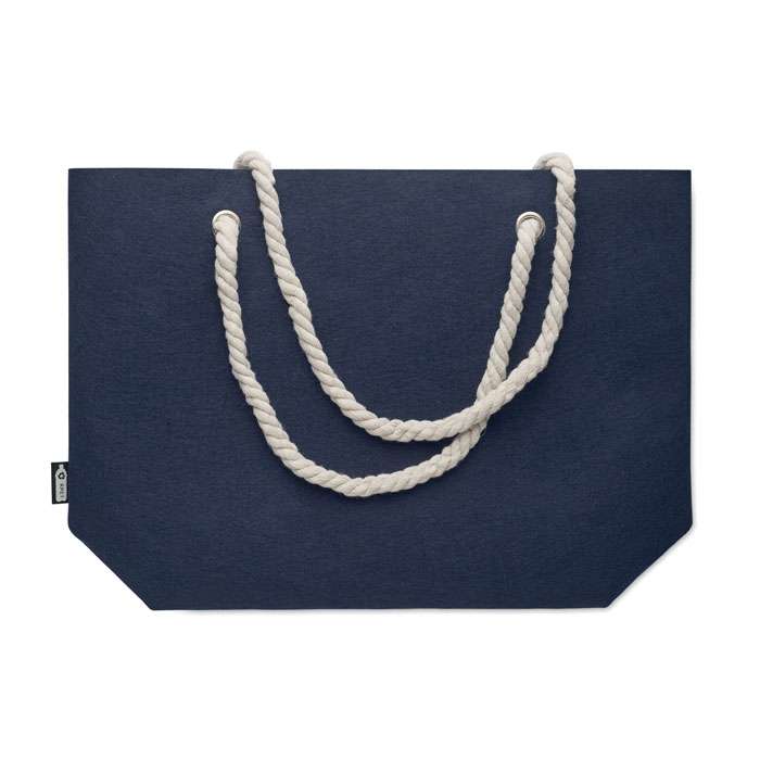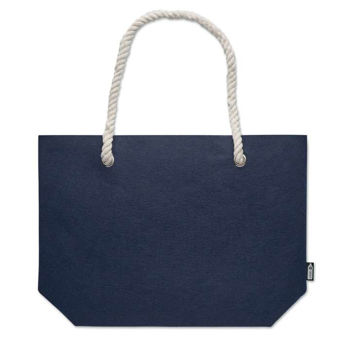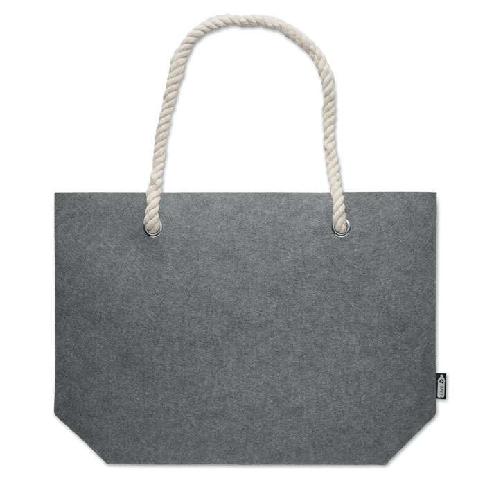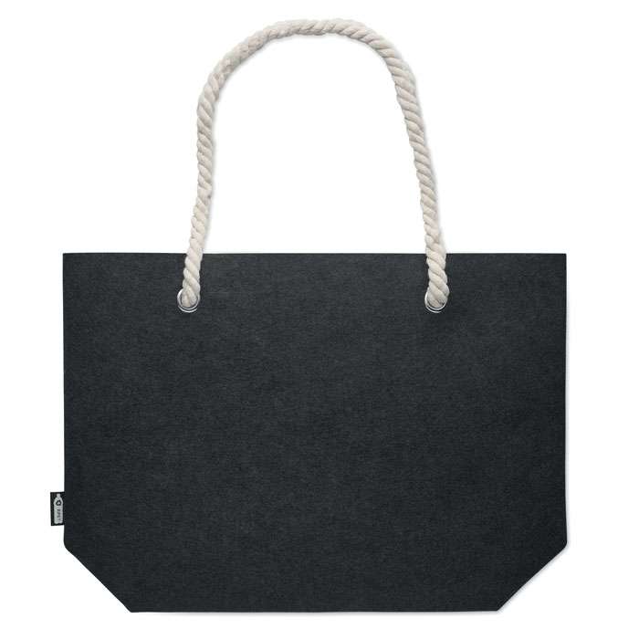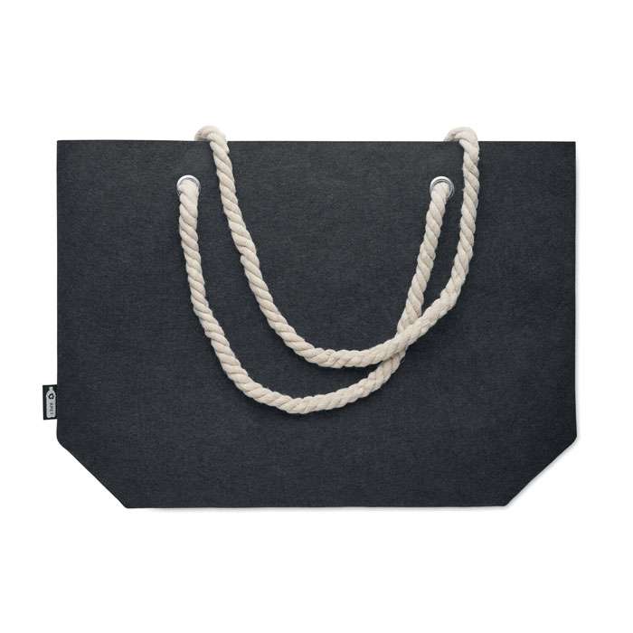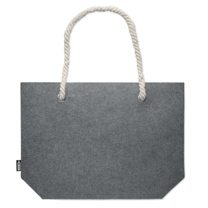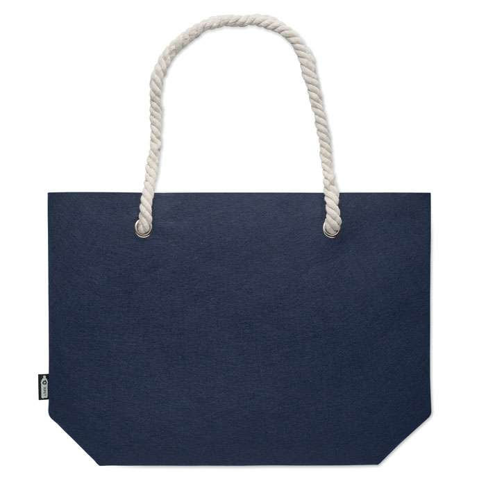 Strandväska eller shoppingväska av RPET-filt med handtag av snörning. Tjocklek på filten: 2 mm.
