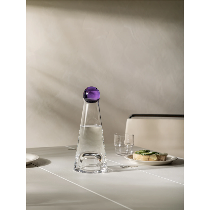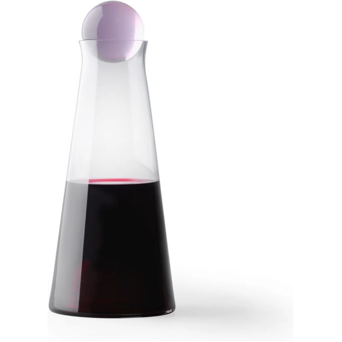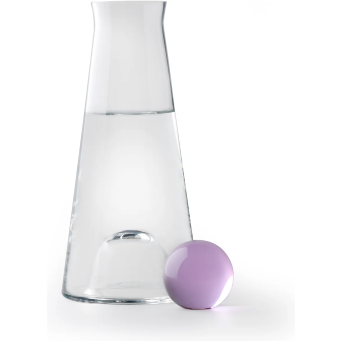 Karaff i munblåst glas med kula i kristallglas. Designad av Nina Jobs. Kulan kan förvaras under karaffen vid användning. Diskmaskinssäker. 100 cl.