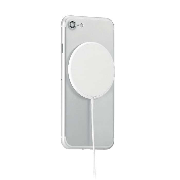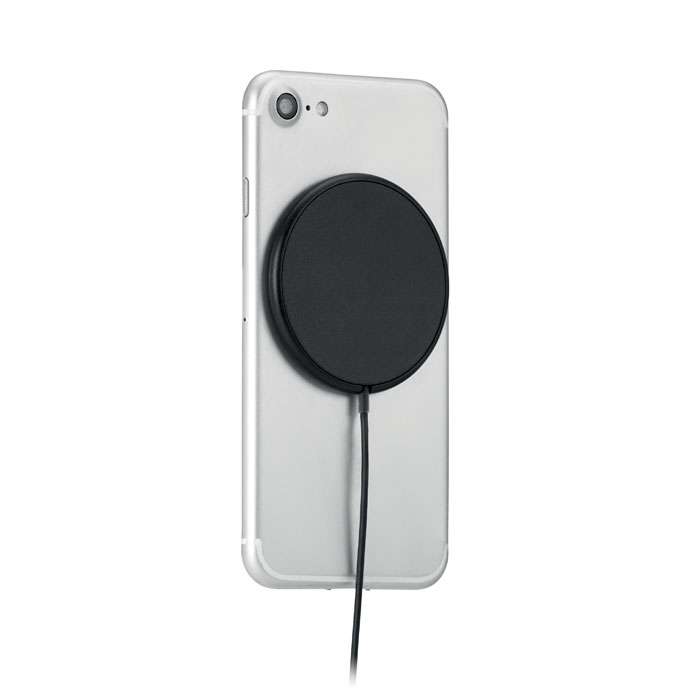 Magnetisk trådlös laddare i ABS. Ladda din smartphone trådlöst med denna laddningsplatta. Eftersom den har en magnet inuti kommer att fästa mot din telefon, även när du använder din telefon. Bra när du vill ladda din mobila enhet, men också vill