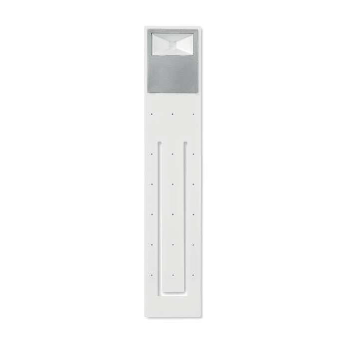 Läslampa med LED ljus. Flexibel kropp för enkel inställning av vinkeln. På grund av sin tunna form kan den även användas som bokmärke. Drivs av 2 st CR2032 batterier som ingår.