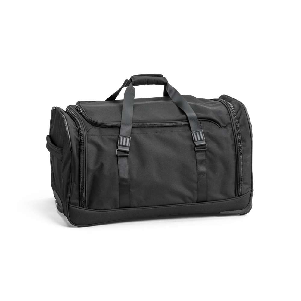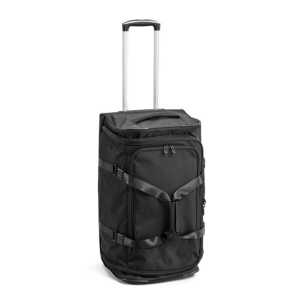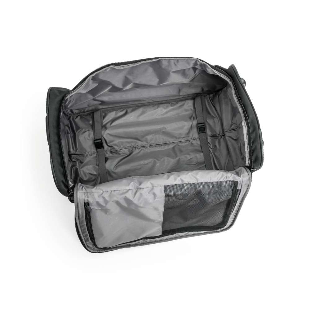 Rymlig duffelbag, från North Pioneer, med draghandtag och hjul. Volymen är 85 liter fördelat på ett stort fack och en rymlig ytterficka. Tvåstegs draghandtag och hjul som möjliggör bekväm transport på släta underlag. Dubbla spännband, stor nätficka och blixtlåsficka för att kläder och dylikt ska hållas på plats i väskan. Bekväma bärhandtag upptill och på kortsidan gör väskan smidig att hantera vid in- och urlastning. Plastfötter gör att väskan kan stå upprätt stadigt. Finns i två olika storlekar.