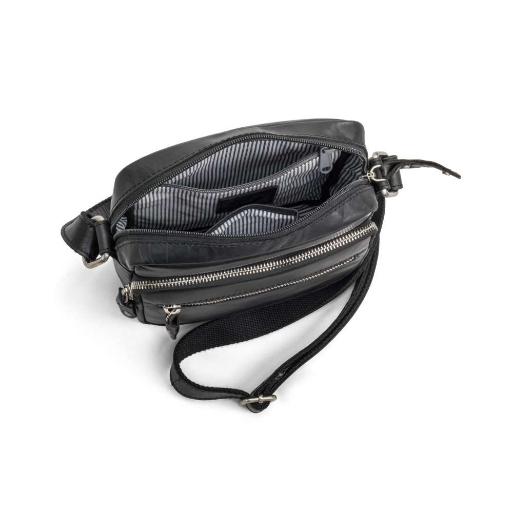 buffelskinn. Den har två utvändiga dragkedjefack,