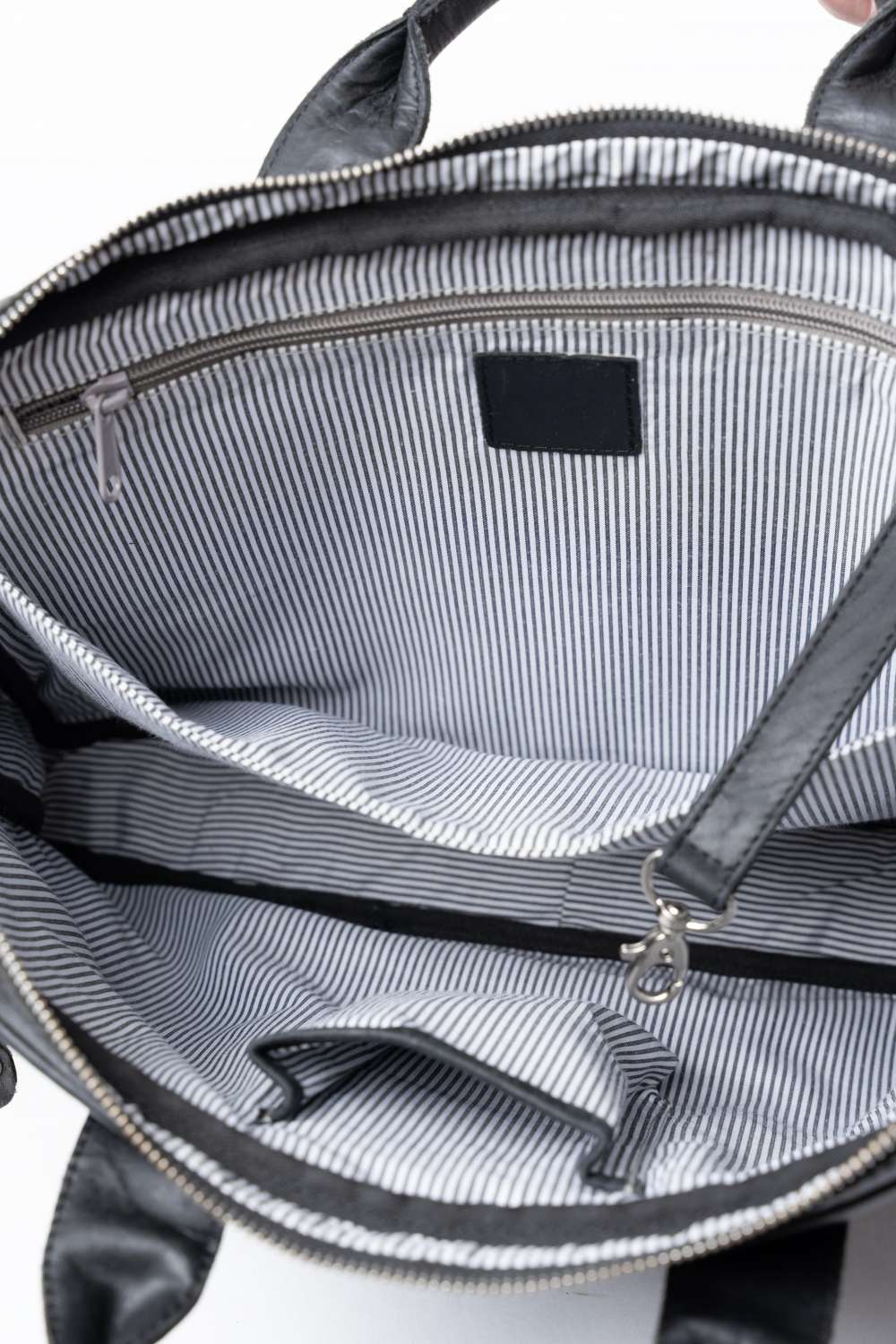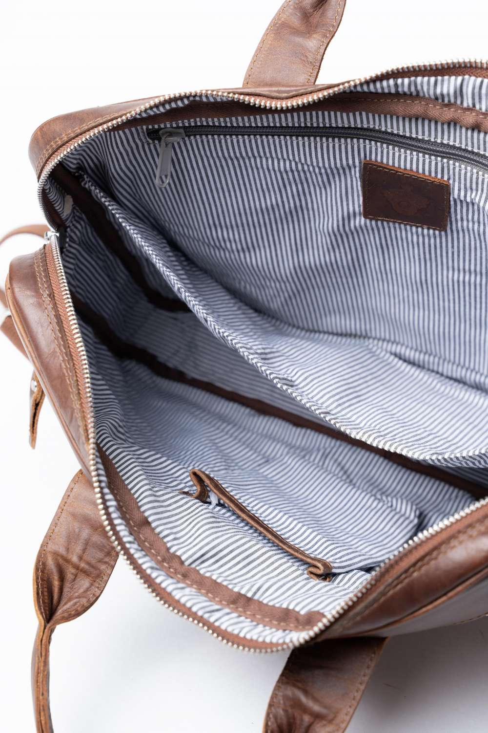 Cab Florens dataväska 15″. Tillverkad i finaste och mjukaste skinnet, väskan bär du i handtaget eller axelremmen som medföljer, på framsidan finns en lång ficka med blixtlås och på baksidan finns även där en lång ficka med blixtlås. enkelt att sätta väskan på din resväska med hjälp av läderbandet som håller väskan på plats, invändigt möts du av modern randigt foder, fack på ena sidan datafack på andra sidan ,här finns även en lång ficka med blixtlås