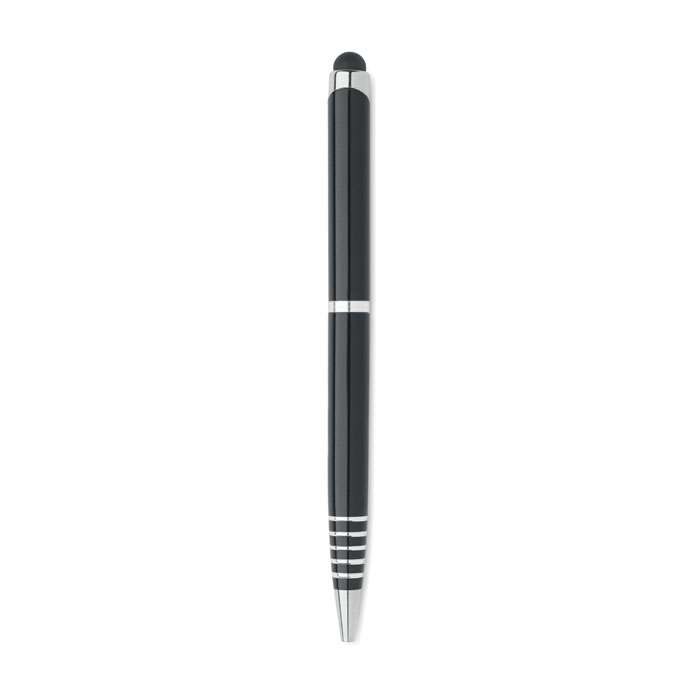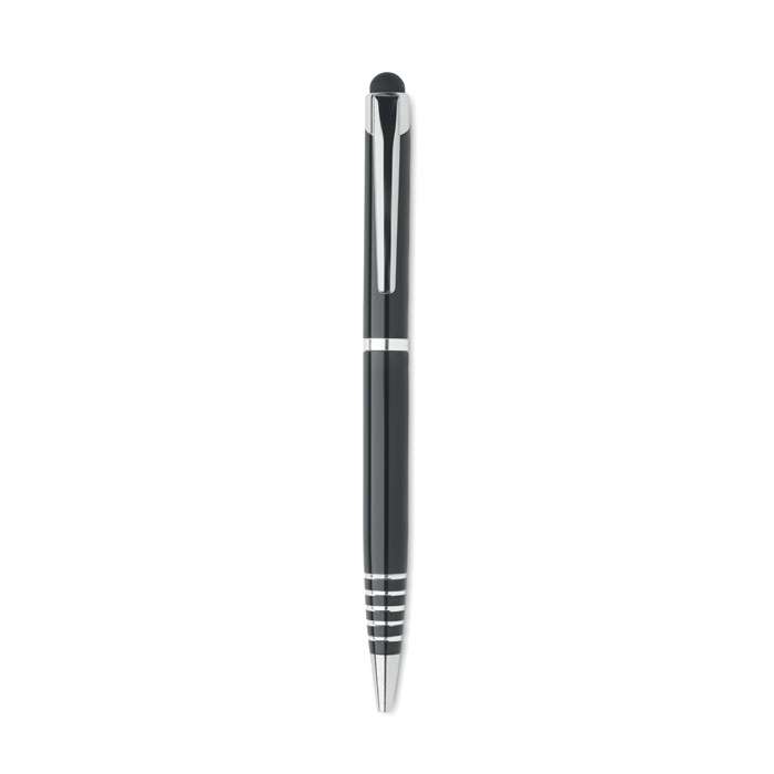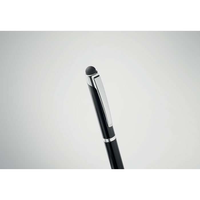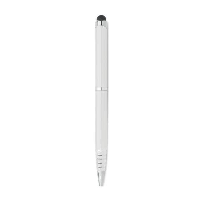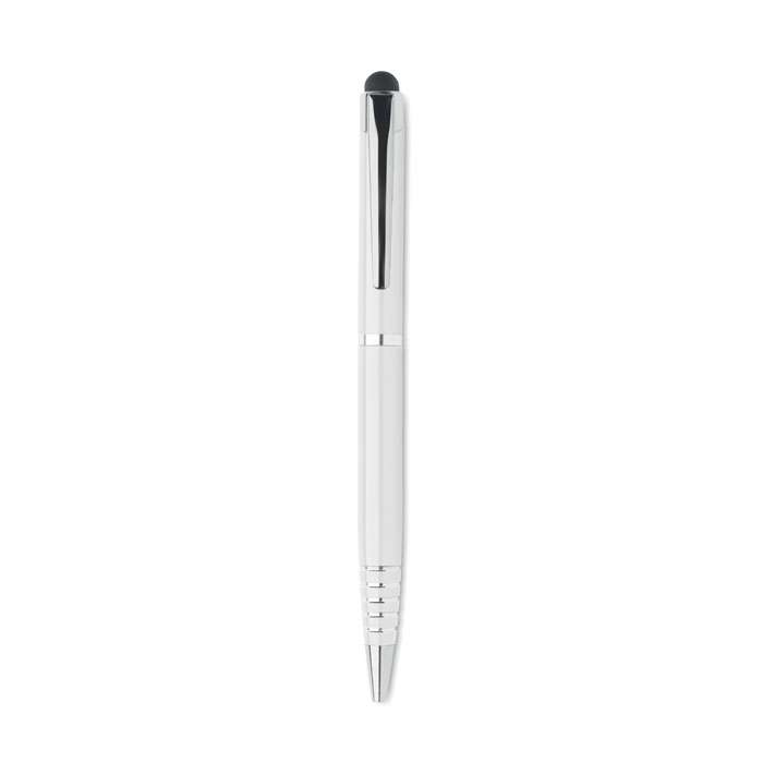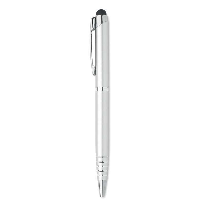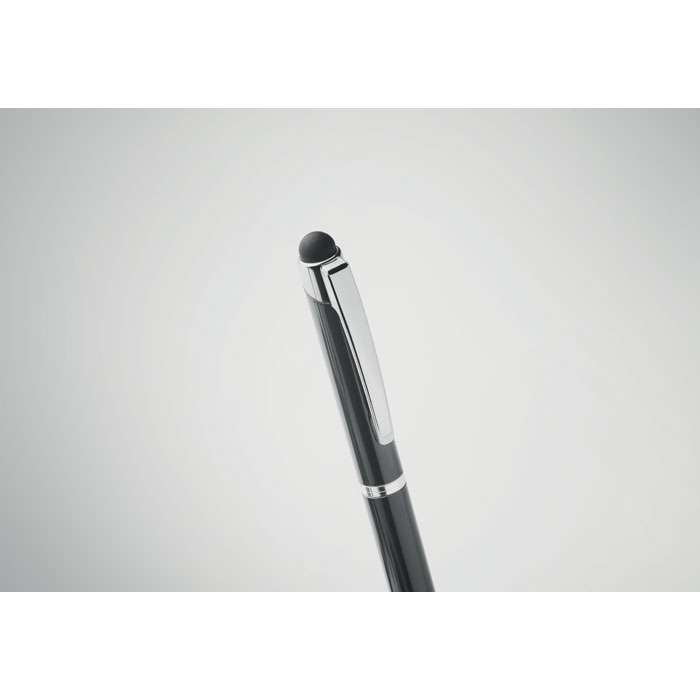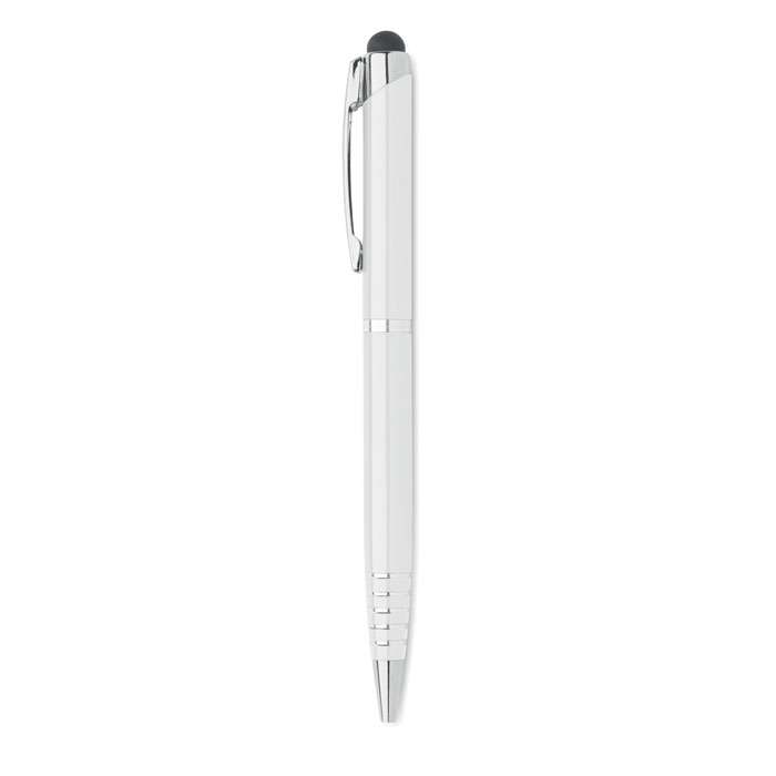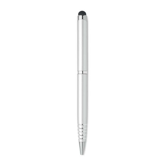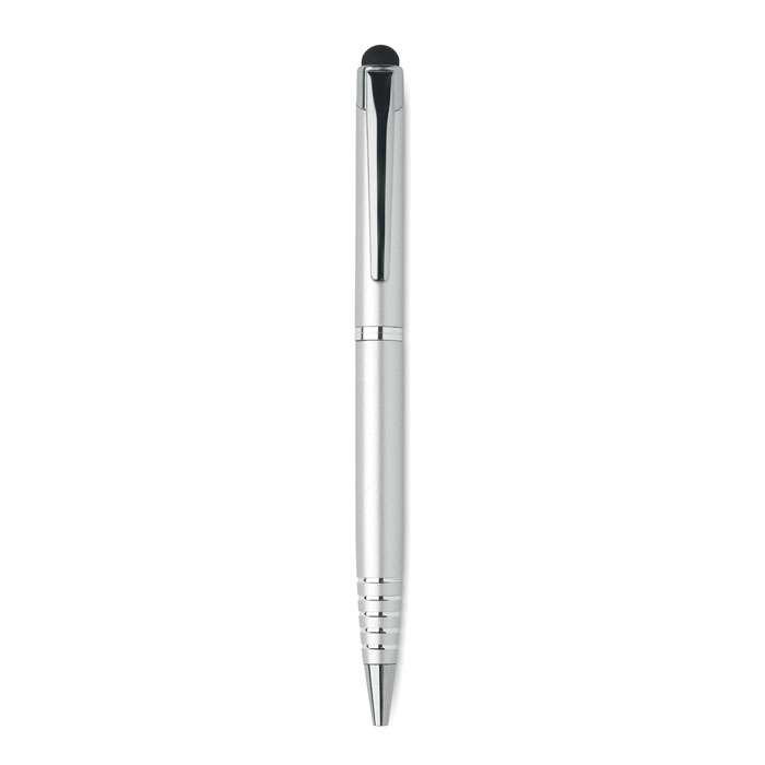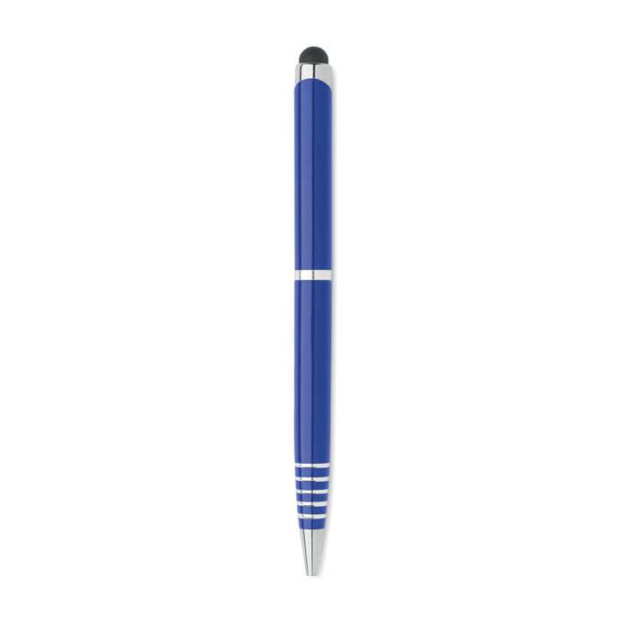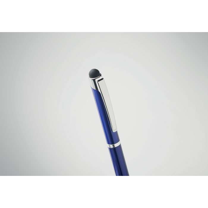 Kulspetspenna i återvunnen aluminium med vridmekanism och stylus. Blått bläck.