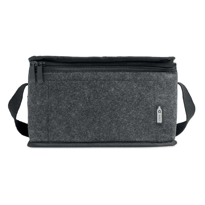 Kylväska av RPET-filt med framficka. 1 mm RPET-filt och 3 mm isolerande laminerad aluminiumfolie. Kapacitet: 5 liter.