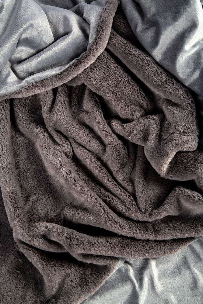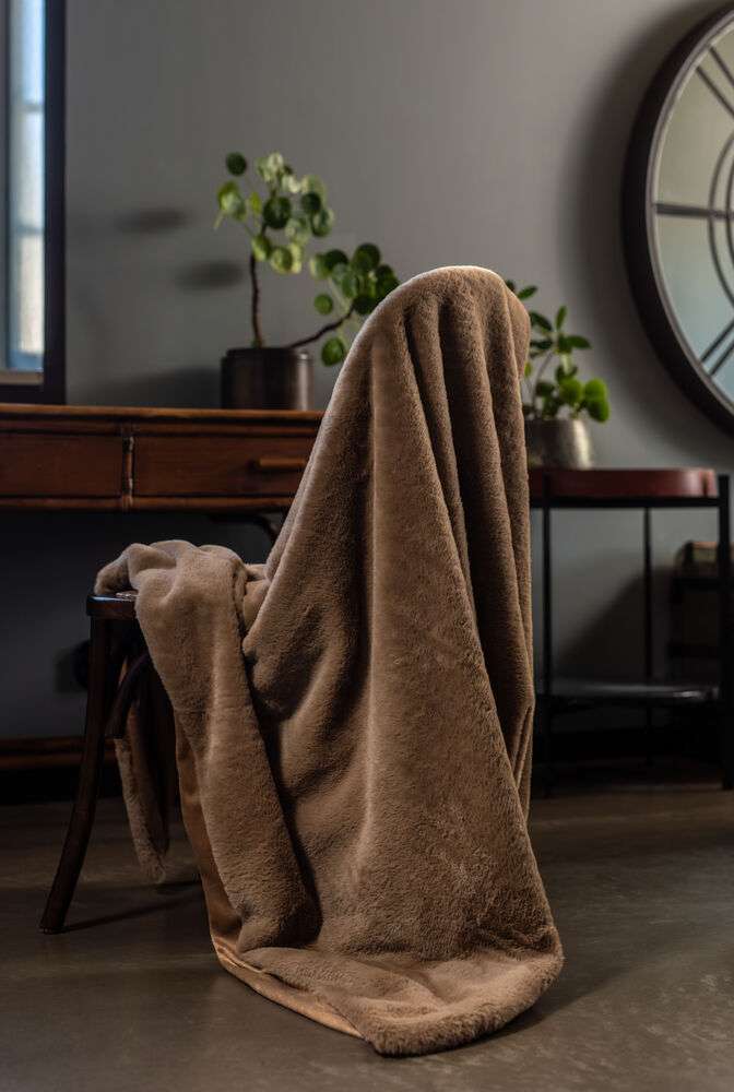 Underbart mjuk och varm pläd tillverkad i fuskpäls och mikromink som ger den ett pälsliknande utseende. Filten är stor och värmande och förhöjer myskänslan i hela rummet.
