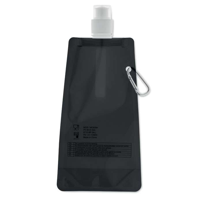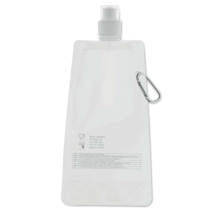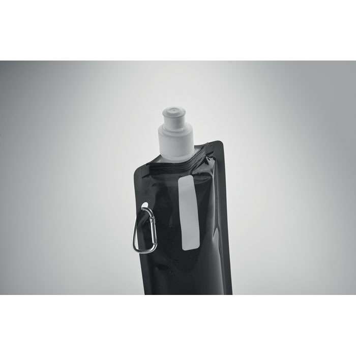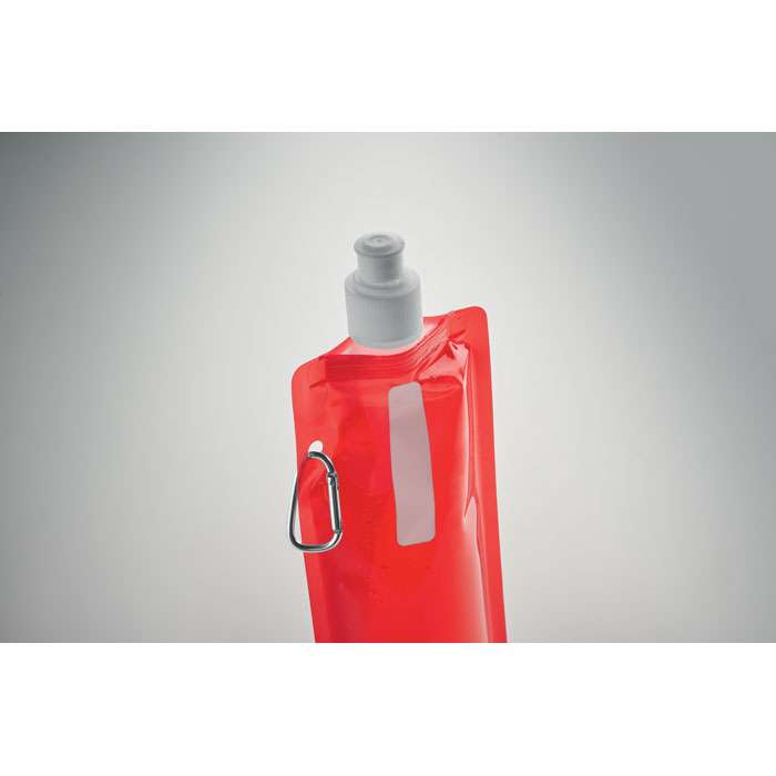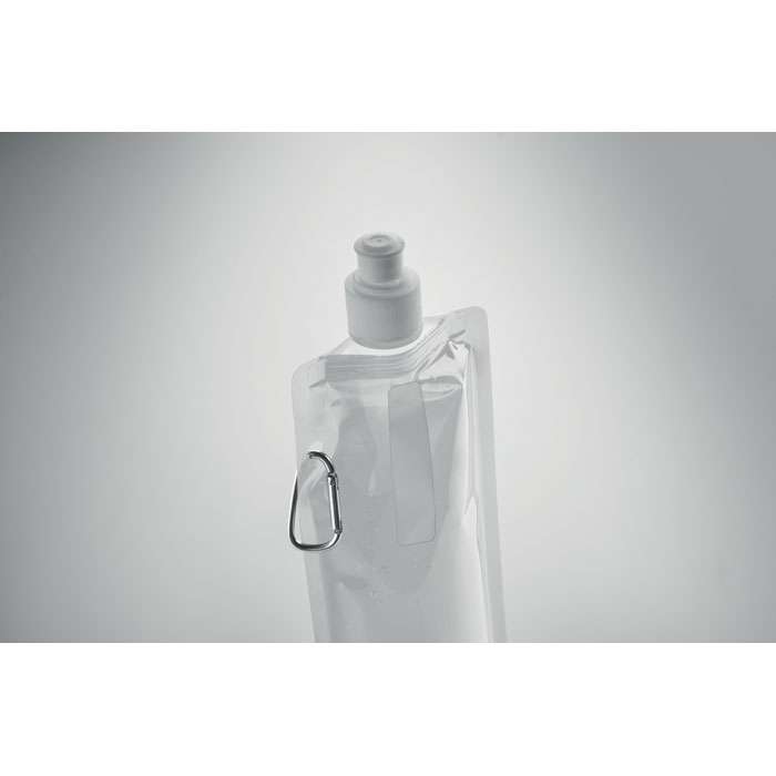 Vattenpåse i BPA fri plast med aluminium karbinhake. Med skruvkork och förslutbar drickpip med lock. Rymmer 480 ml. Läckagefritt.