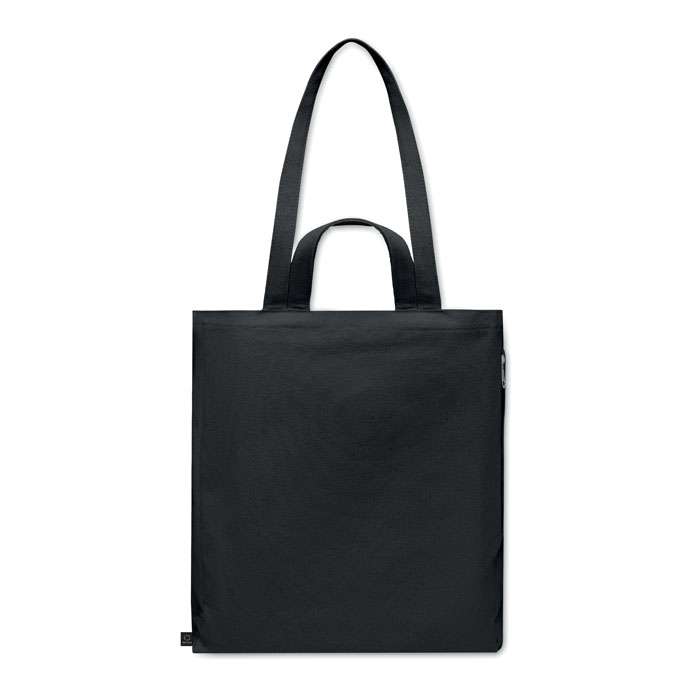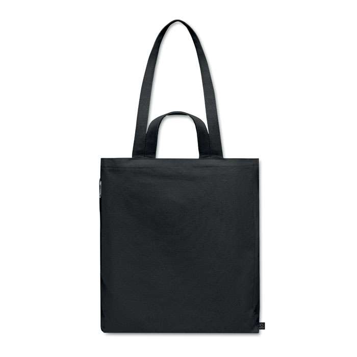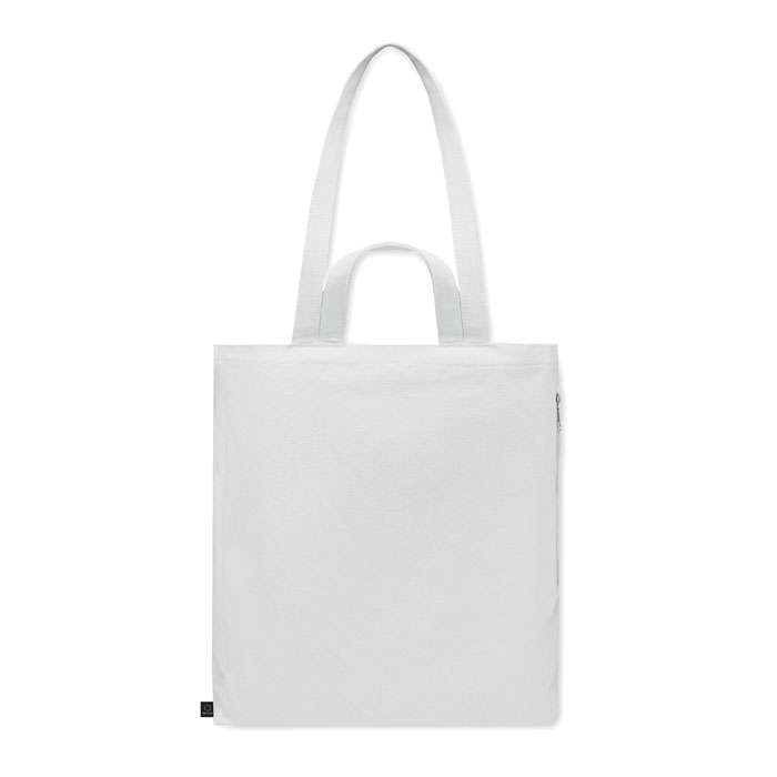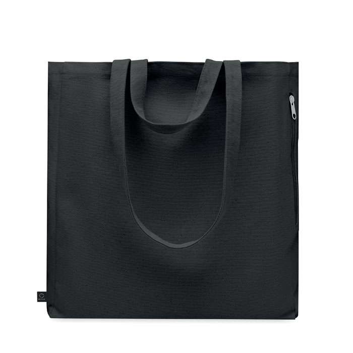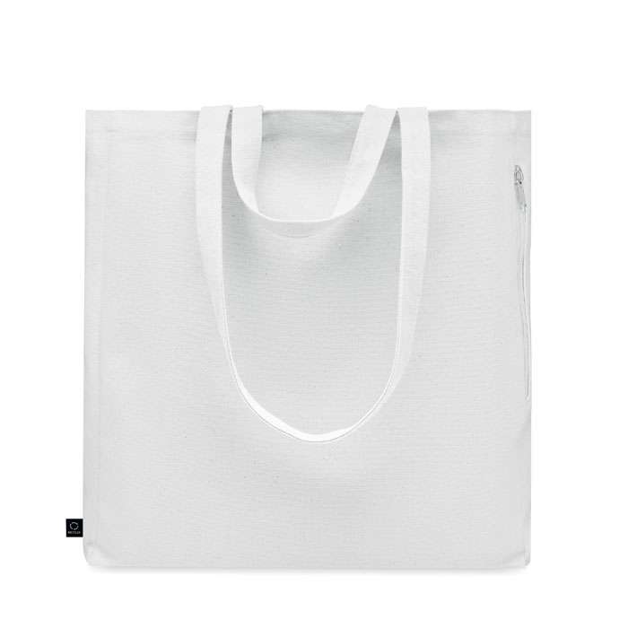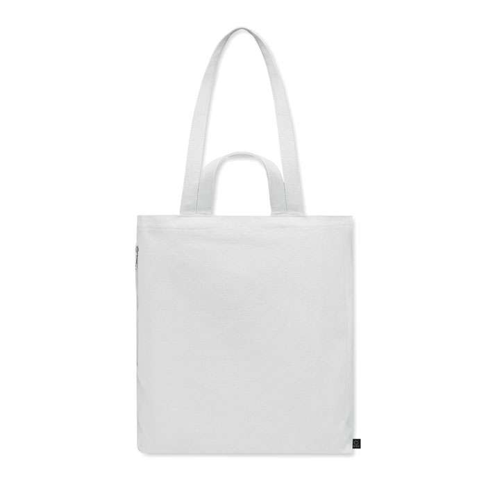 Tygkasse eller strandväska av återvunnen polycotton (70 % återvunnen bomull, 30 % återvunnen polyester) med korta handtag. Den har en sidoficka med dragkedja.380 gr/m².