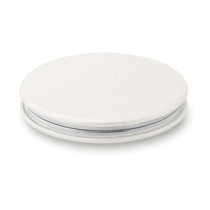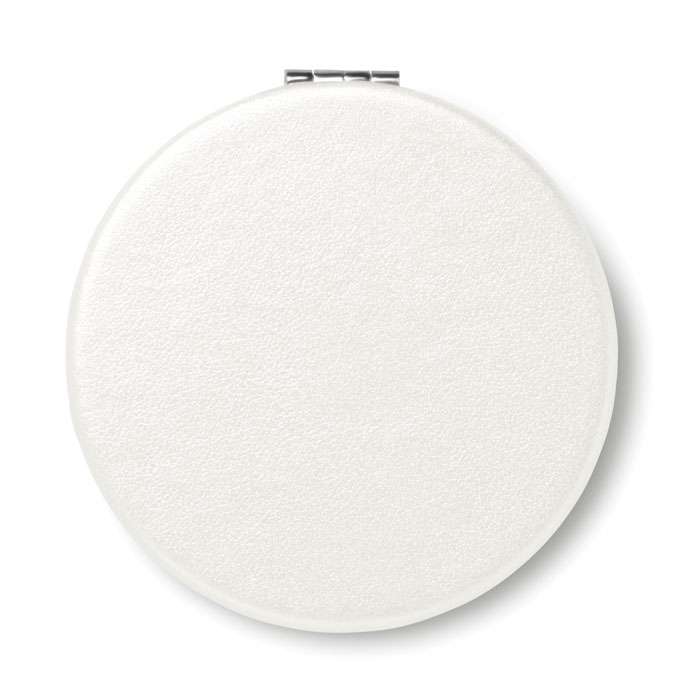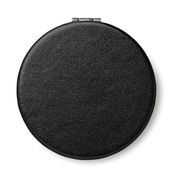 Fickspegel i rund form med PU omslag. Dubbla speglar invändigt och magnetförslutning.