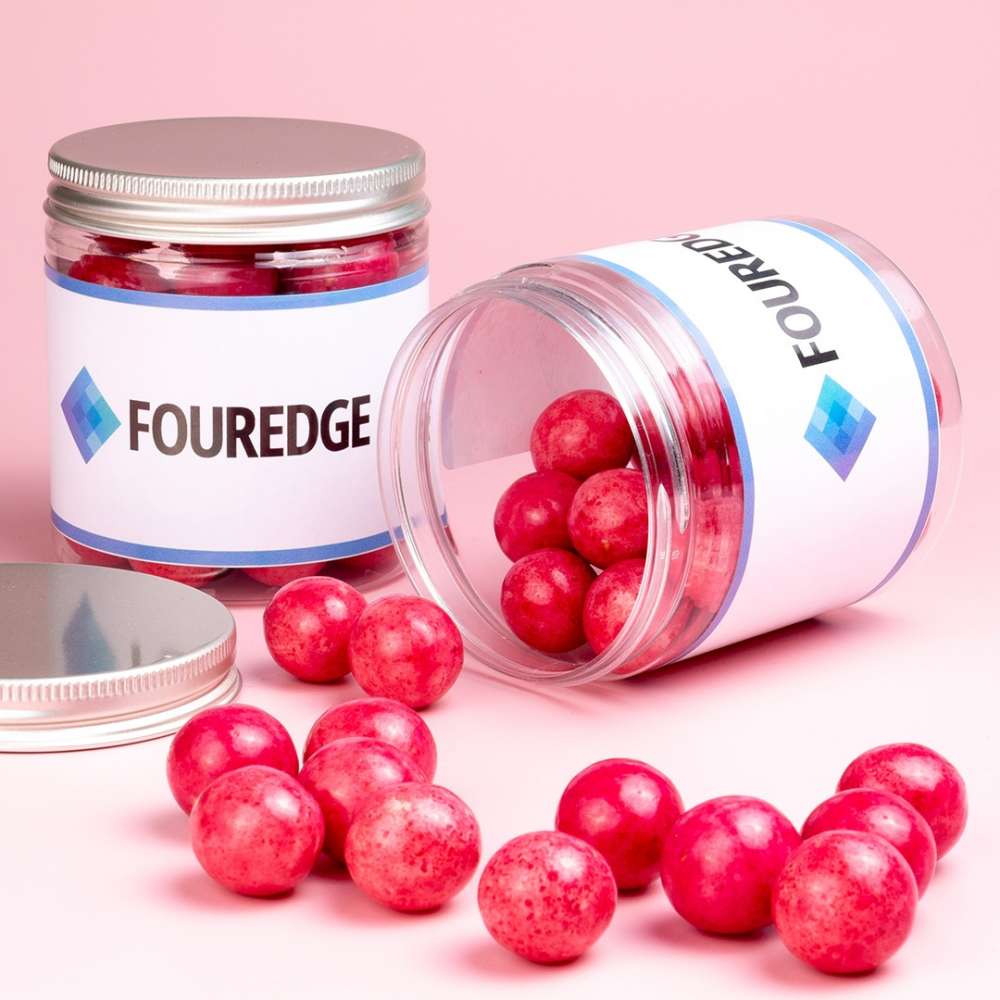 Ge bort en lyxig delikatessburk fylld med utsökt lakrits eller smågodis. En digitaltryckt etikett runt burken förmedlar ert budskap på bästa sätt.