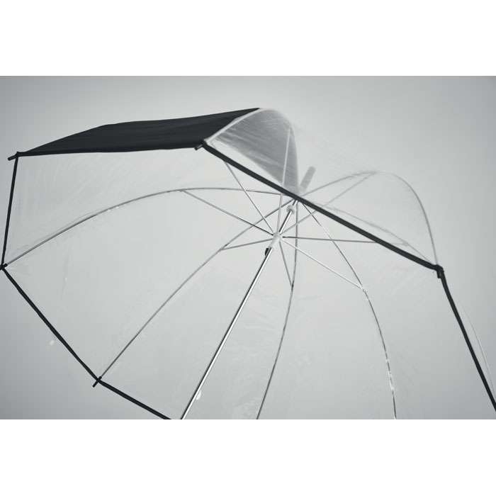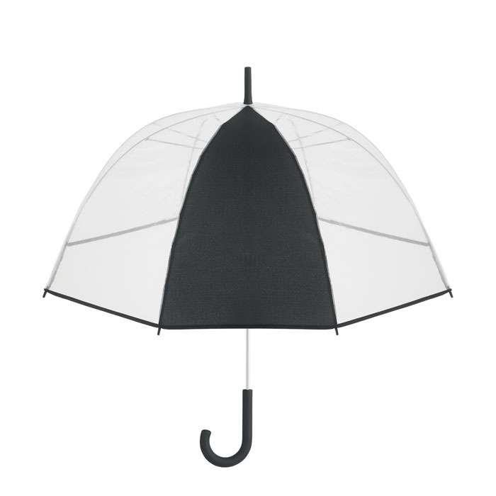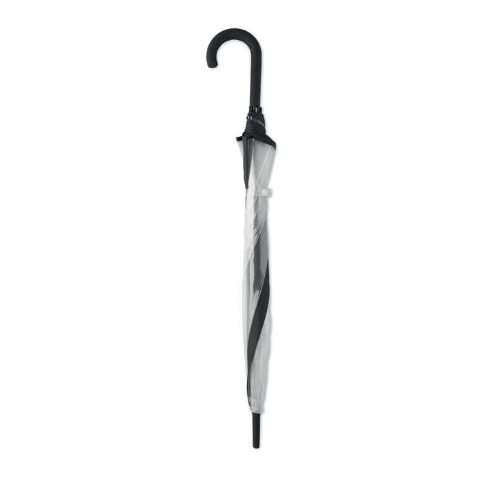 23 tums rakt paraply i POE med PG-piping och 1 panel i polyester för tryckyta. Manuell öppning. Glasfiber, ribbor och ram. Förkromat skaft med plastspetsar. Handtag i gummi.