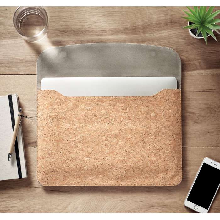 Laptopväska i kork för datorer upp till 14 tum. Lock med magnetisk stängning.