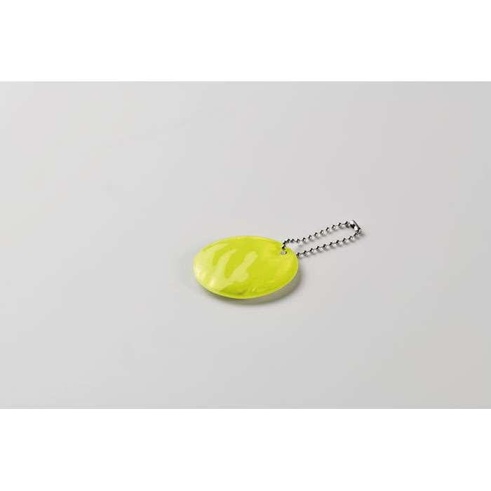 Rund reflekterande nyckelring i PVC. För reklamanvändning.