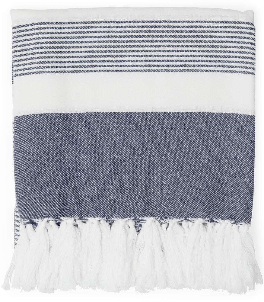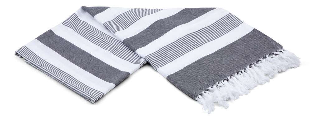 Hamam Amdal med breda och smala ränder ger en klassisk tidlös stil. Badlakanet har fransar på kortsidorna och kommer i fem färgställningar. En Hamam kan användas som badlakan, picknickfilt, duk, eller som ett klädesplagg, den tar liten plats och torkar snabbt.