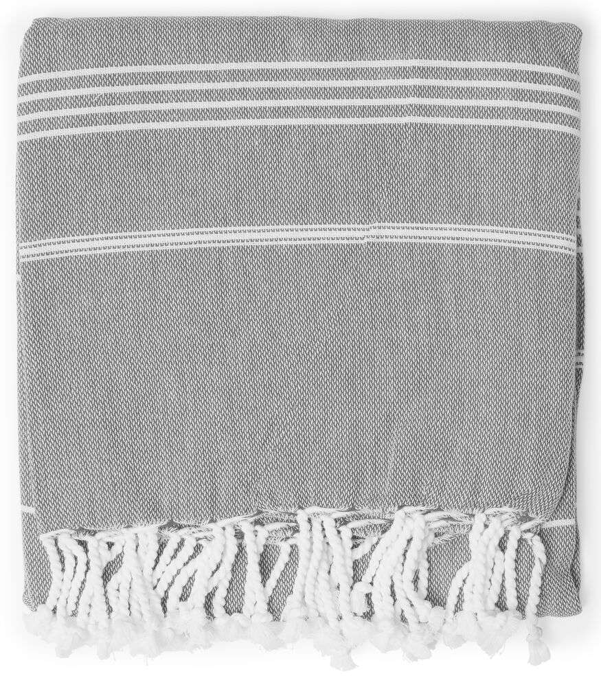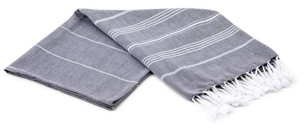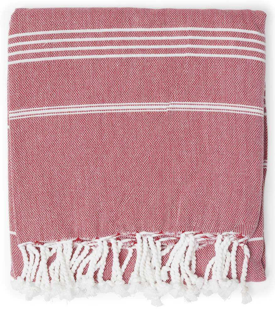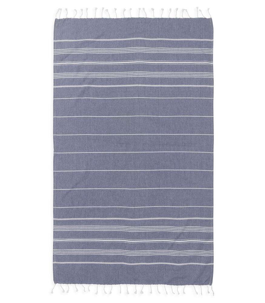 Hamam Skärbo med smala vita ränder med en basfärg ger badlakanet en känsla av lugn och harmoni. Badlakanet har fransar på kortsidorna, 100% bomull.