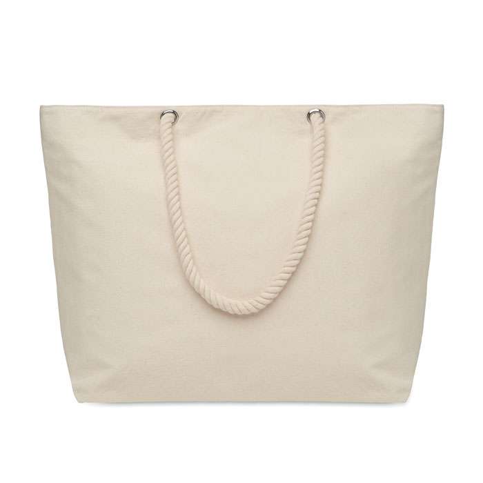 Kylväska med dragkedja i bomull med handtag av snören. 220 gr/m². 2 mm isolering av aluminiumfolie.