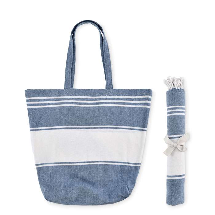 Set med strandhandduk för hamam och strandväska. 70% bomull och 30% polyester 180 gr/m².