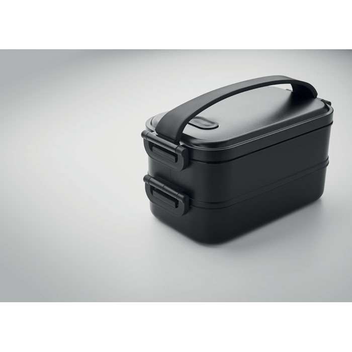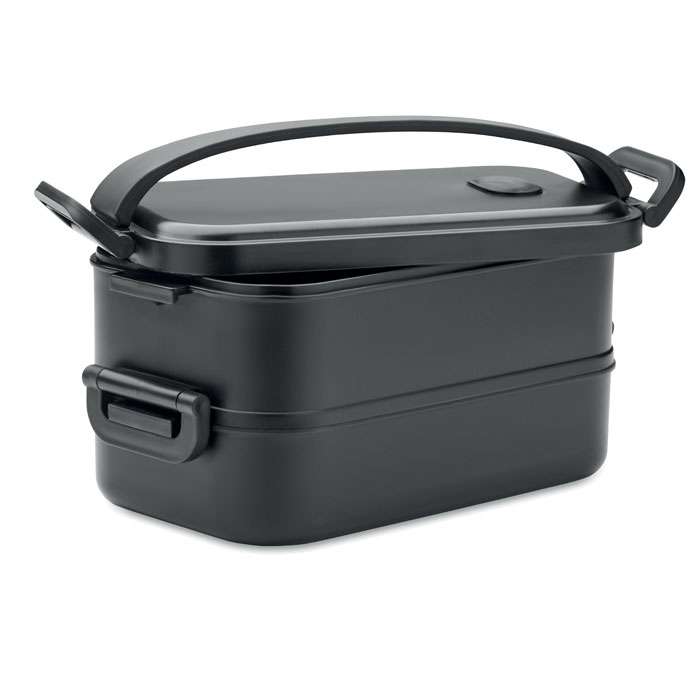 Tvådelad lunchlåda i PP med löstagbar skiljevägg och sidospännen samt lufttätt lock. Kapacitet: 800 ml (2x).