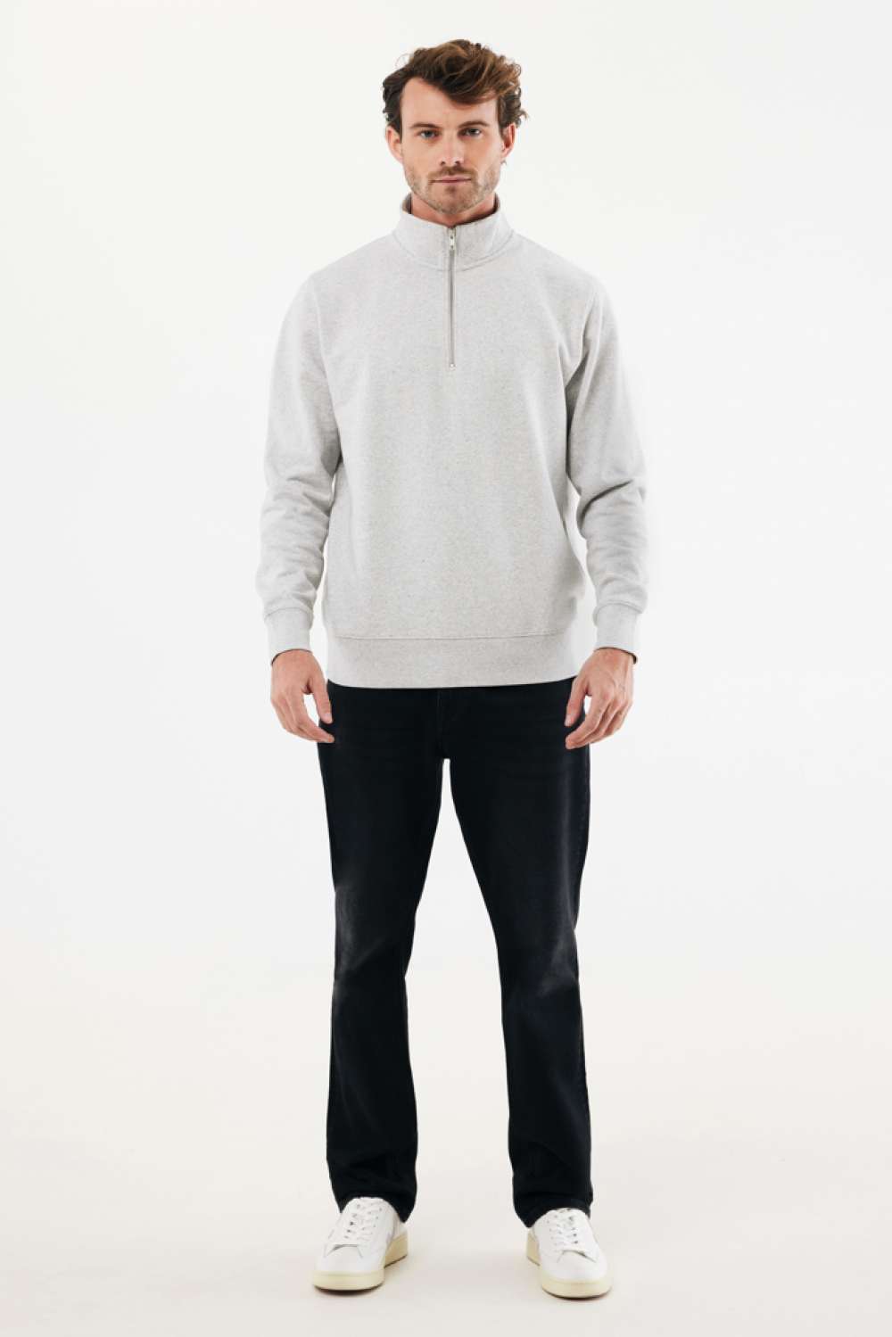 Unisex-tröja med modern passform och kvartlång dragkedja, tillverkad av 100 % bomull, varav 30 % är återvunnen och 70 % ekologisk, i 300 g/m². Tröjan har krage i samma tyg, långa ärmar och 1×1-ribb i ärmslut och nederkant. Insidan av tyget är frotté. Användningen av äkta återvunna och ekologiska material och miljöpåverkan garanteras genom användning av AWARE™ disruptiv fysisk spårning och blockkedjeteknik. Genom att skanna QR-koden får du tillgång till ett dedikerat digitalt pass för produkten. 2 % av intäkterna från varje såld produkt doneras till Water.org. Denna produkt är OEKO-TEX® STANDARD 100 Centexbel-certifierad. På grund av återvunna garns natur kan orenheter och färgvariationer förekomma.