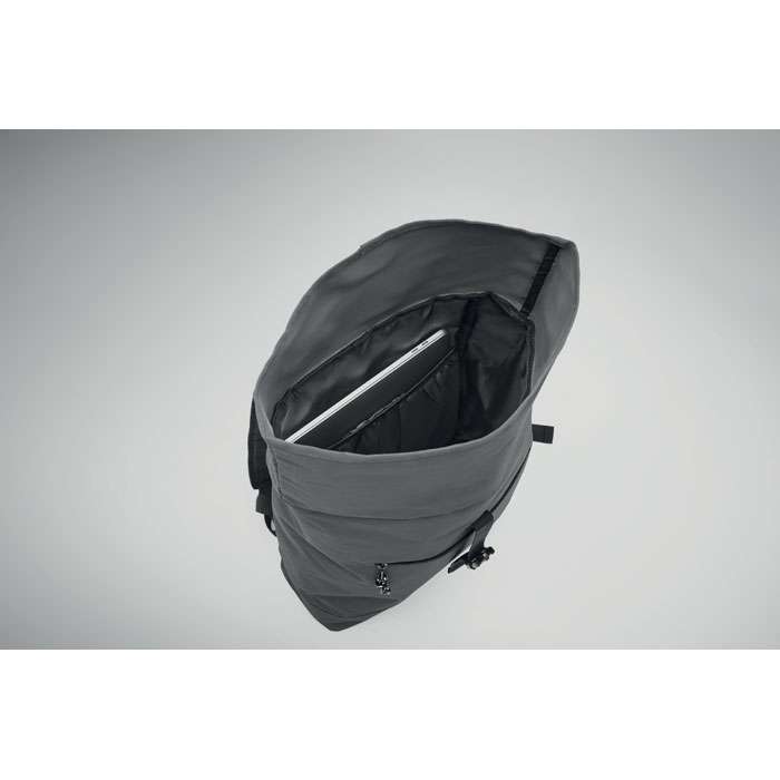 15-tums laptopryggsäck i 600D polyester med vadderad rygg och förstärkt bas. Framficka med dragkedja. Foder i 210D.