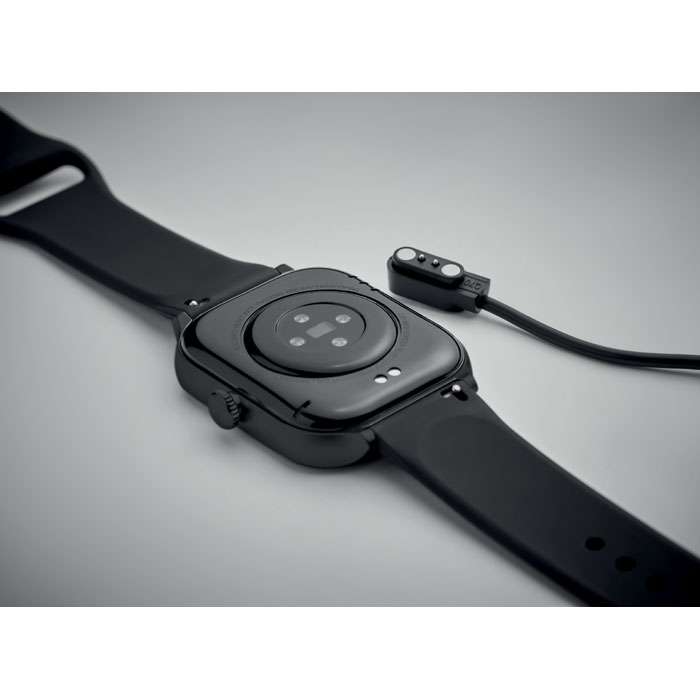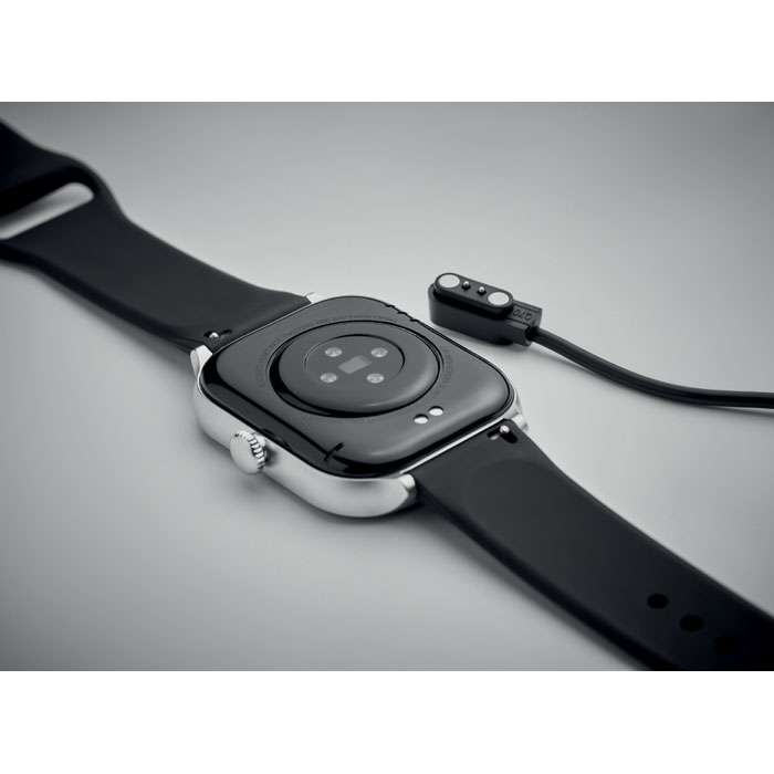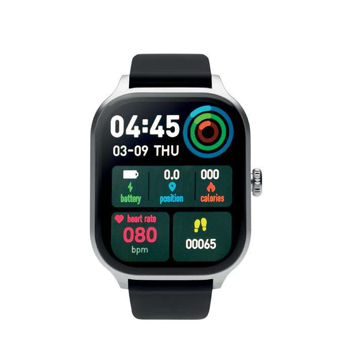 5.4 trådlös smart hälsoklocka i zinklegering med silikonarmband. 2,01 tums LCD-display med touchfunktion. Uppladdningsbart Li-Pol 180 mAh batteri. Kräver en gratis app (HryFine finns för både iOS och Android).