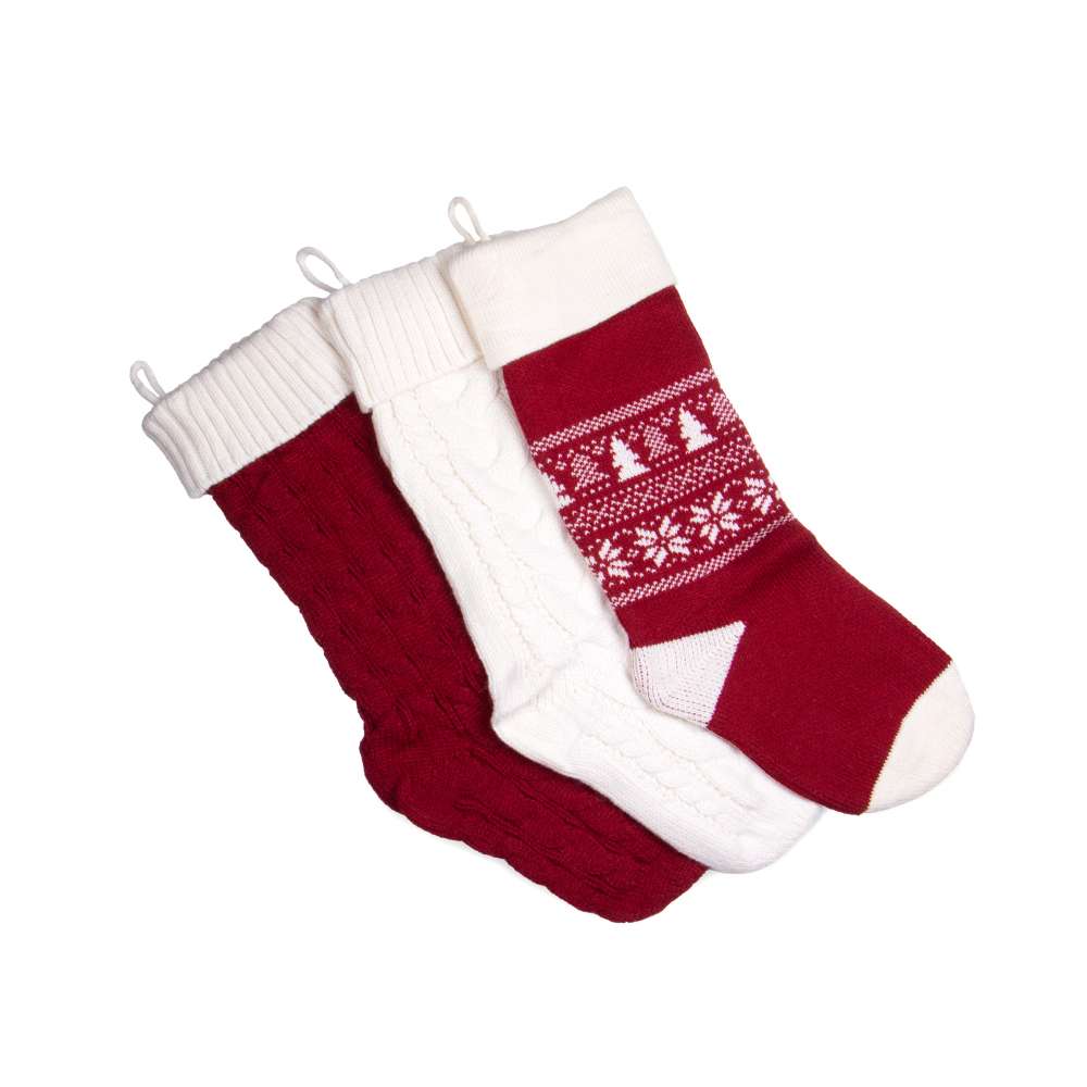 Stickad julstrumpa som kommer blandade i tre olika motiv. Innehåller en påse Cloetta