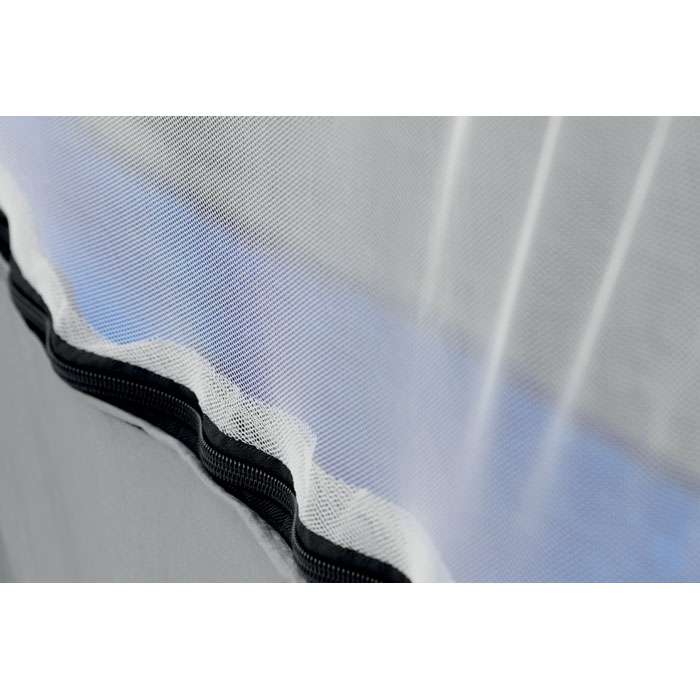 Hängmatta med integrerat myggnät. Tillverkad i lätt och starkt nylonmaterial. För enkel upphängning ingår band och karbinhakar, hängmattan klarar en maxvikt upp till 200 kg.