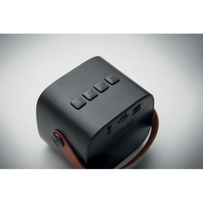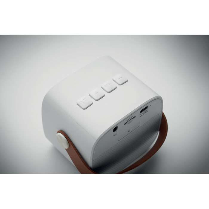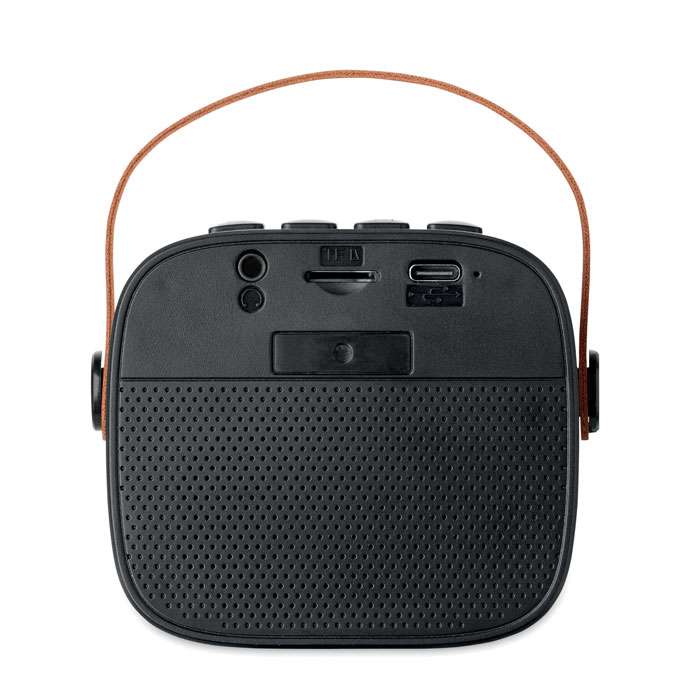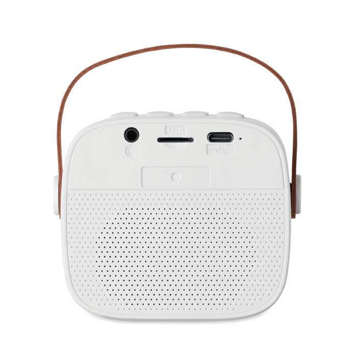 5.0 trådlös högtalare i återvunnen ABS med PU-handtag. 1 uppladdningsbart Li-ION 500 mAh-batteri ingår. Inkluderar en SD-kortport och en AUX/ USB-kabel. Uteffekt: 5W, 3 Ohm och 5V. Speltid ca 4 timmar.