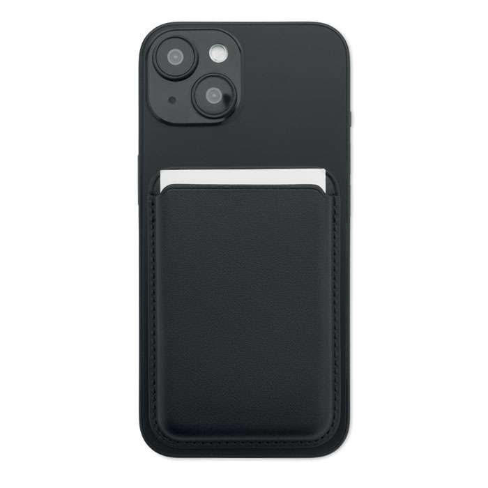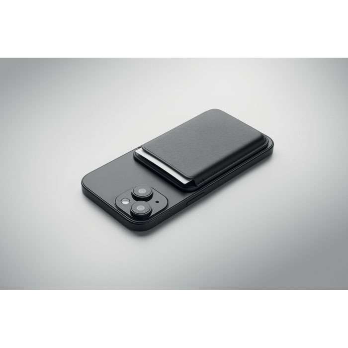 Magnetisk kreditkortshållare (för 3 kort) i PU-läder att fästa på telefonen. Den innehåller en extra metallring.