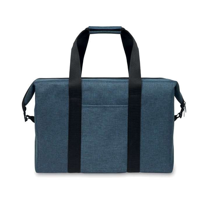 Kylväska i RPET 300D katjonisk polyester (polyester med extra bra färgegenskaper). Isoleringsmaterial: 3 mm skum laminerat med aluminiumfolie. Volym 37L.