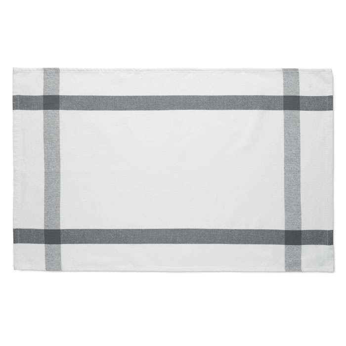 Kökshandduk av återvunnen polycotton tyg (50 % återvunnen bomull och 50 % återvunnen polyester). 180 gr/m².